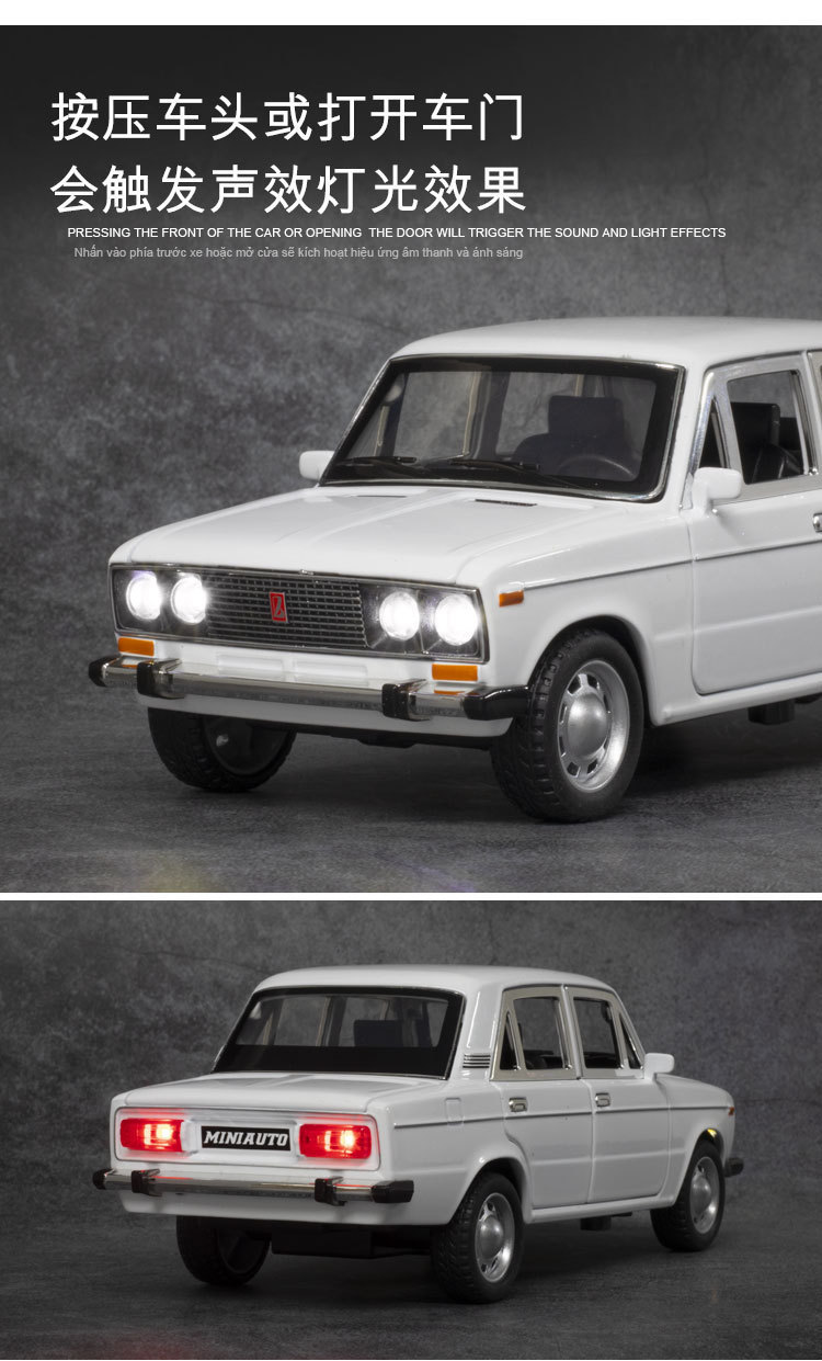 Jianyuan aleación modelo de coche 1:24 Lada Retro Coche clásico tire de la puerta trasera sonido jugando coche música modelo adornos