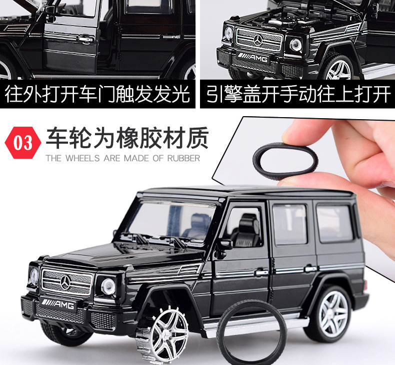 Jianyuan aleación 1:32 Mercedes-Benz grande GG65 vehículo todoterreno modelo de sonido y luz Tire hacia atrás modelo de coche de juguete colección de decoración de coches