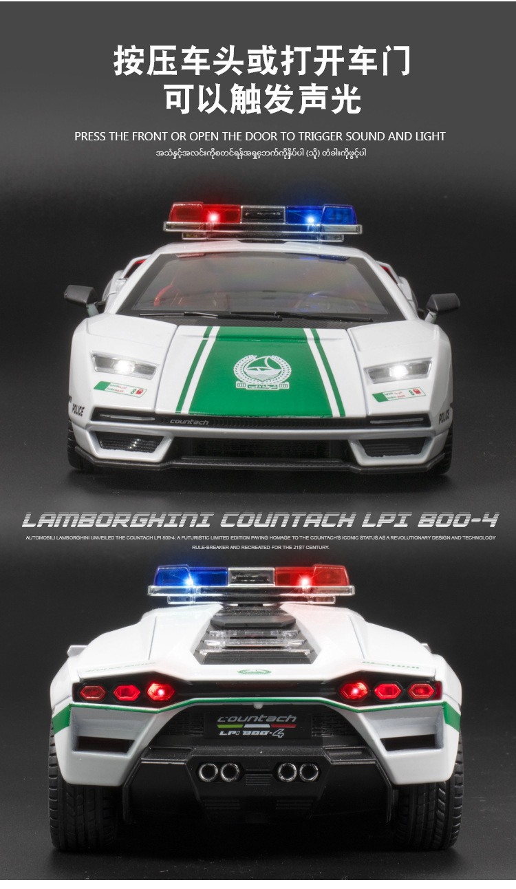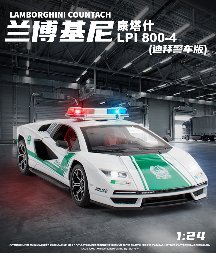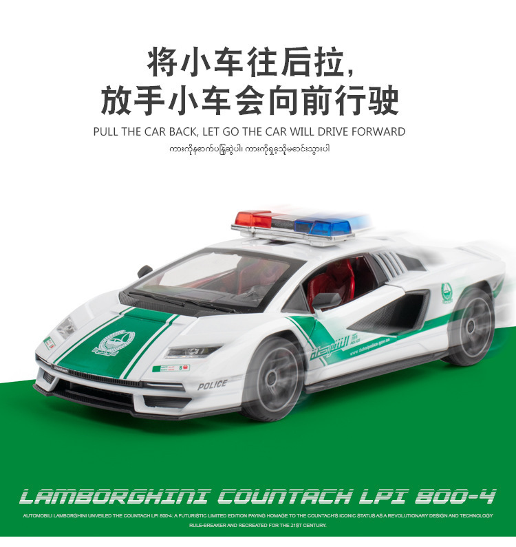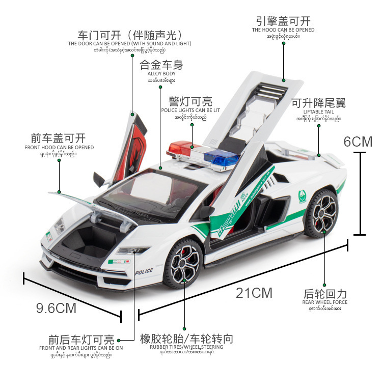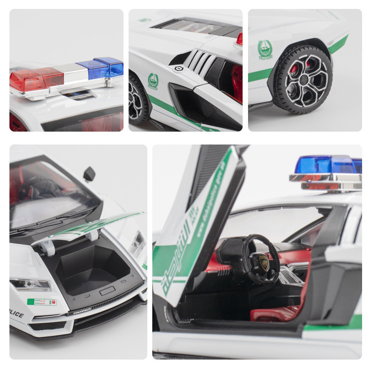 Modelo de coche de aleación Dubai 1:24 Rambo Medio Oriente versión policía coche sonido y luz tire volver niño juguete coche modelo decoración colección