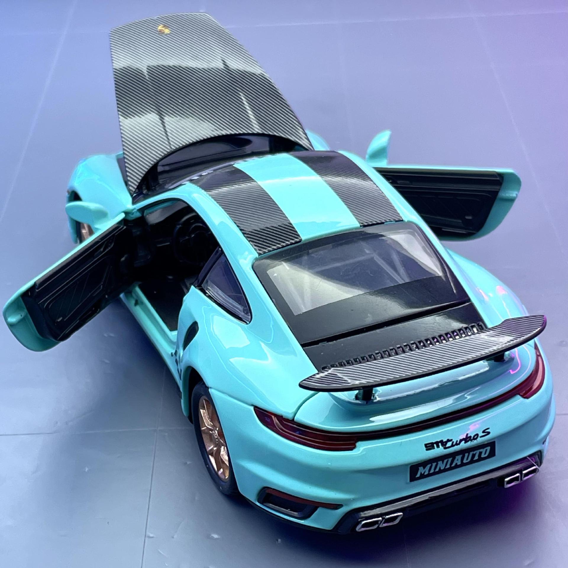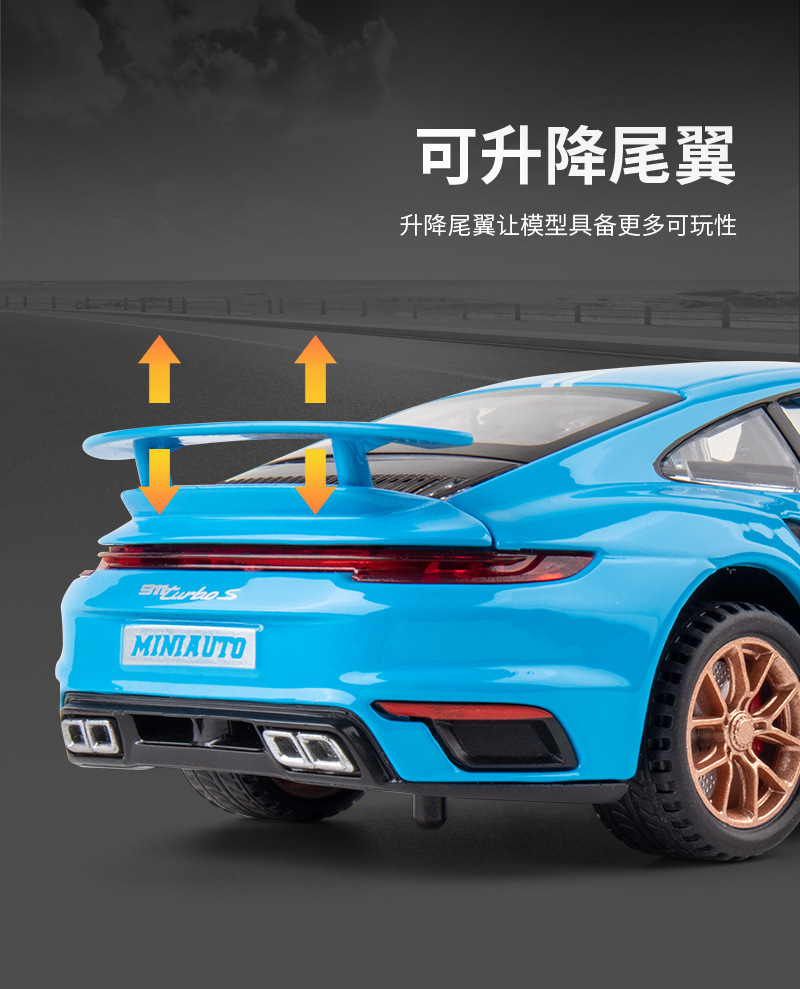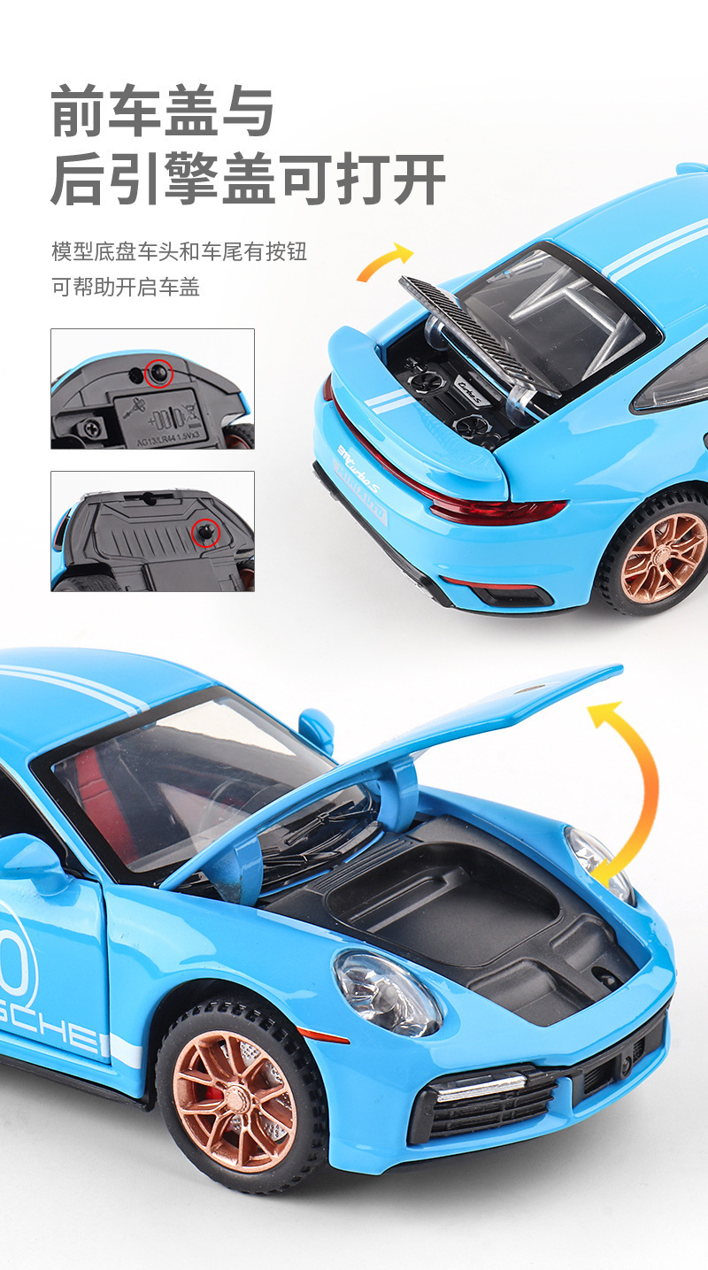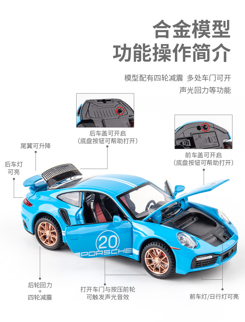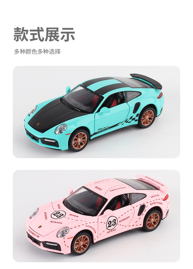 Jianyuan modelo de coche de aleación 1:32 juguete que preserva el tiempo 911Turbo S Tire hacia atrás el sonido y la luz del coche de juguete modelo de música Decoración