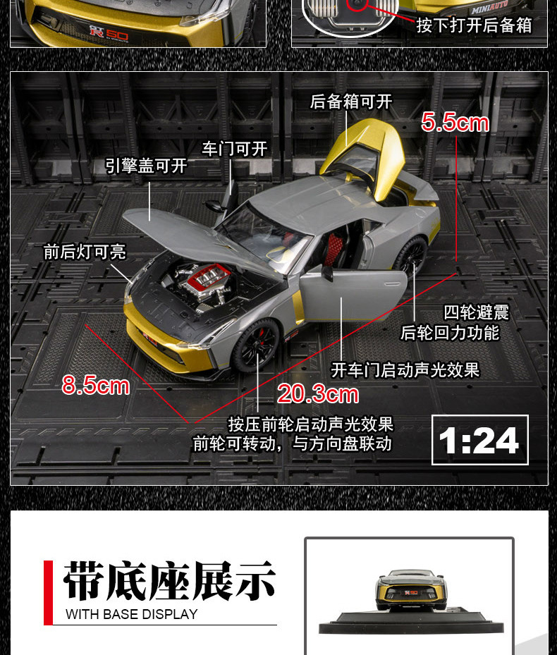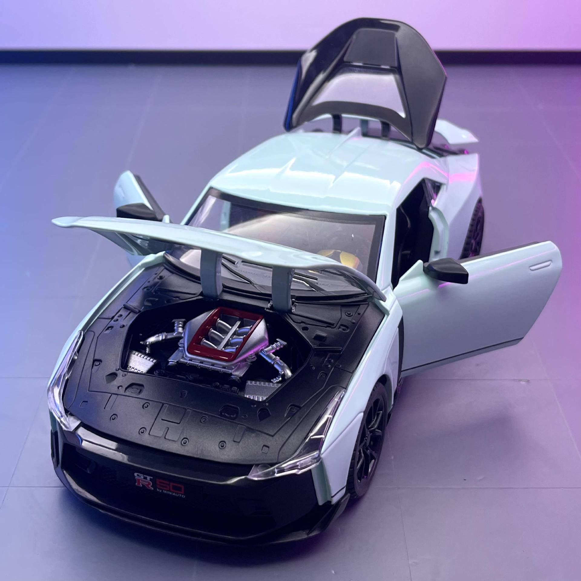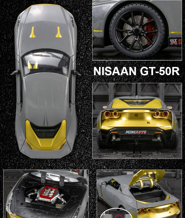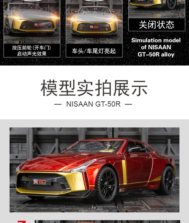 Jianyuan aleación coche modelo 1: 24 nissan GTR-50 coche deportivo tire hacia atrás el sonido y la luz 4 puerta abierta modelo de coche de juguete adornos