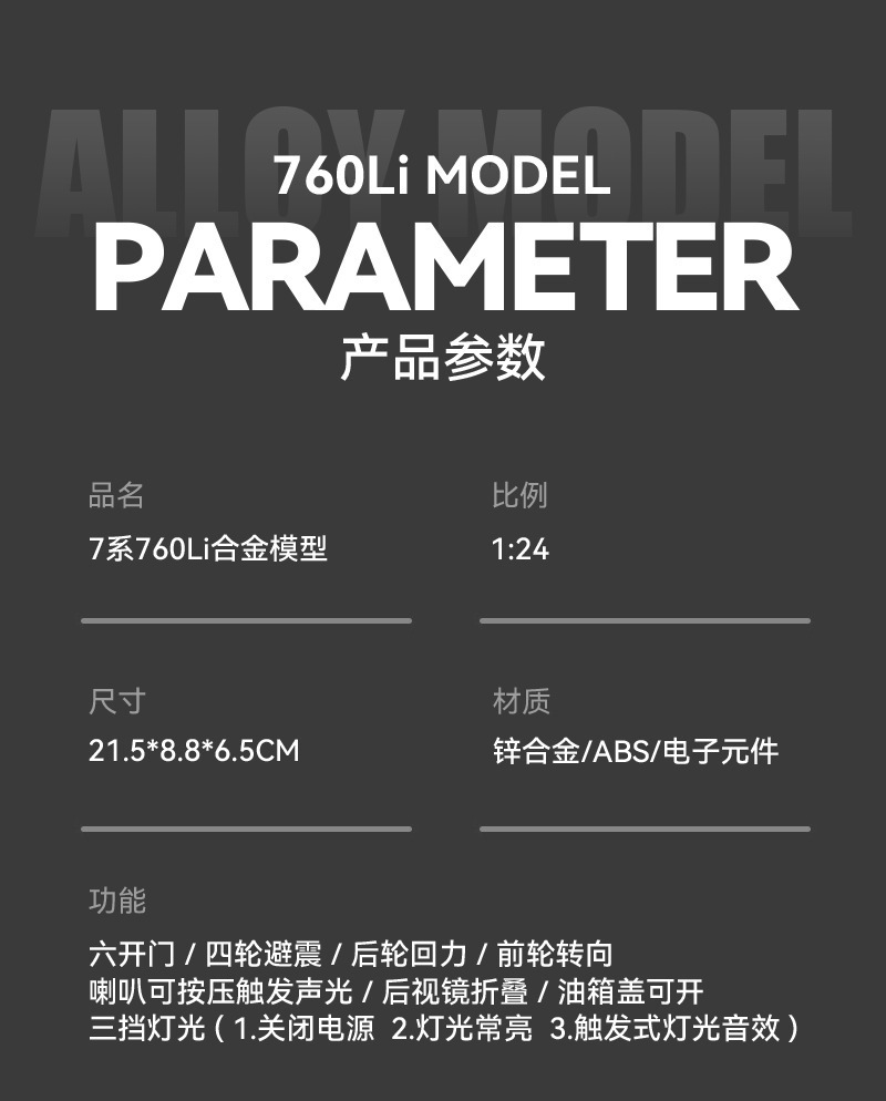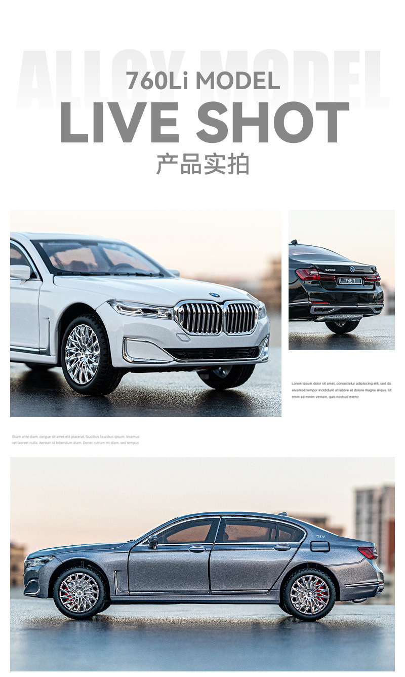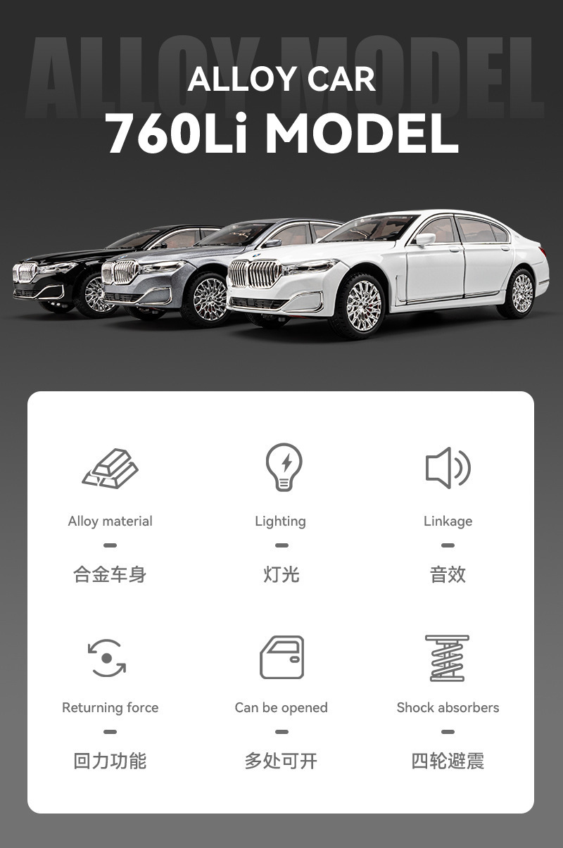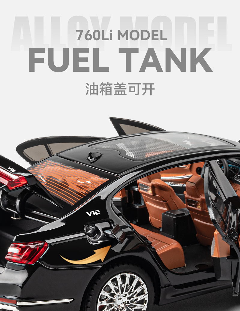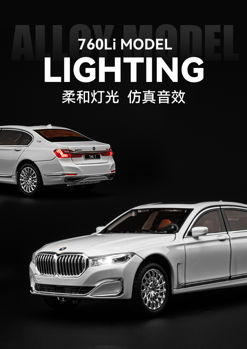 Aleación de coche 1 a 24 baoma 760li coche modelo pull back sonido y luz juguete coche música modelo decoración colección