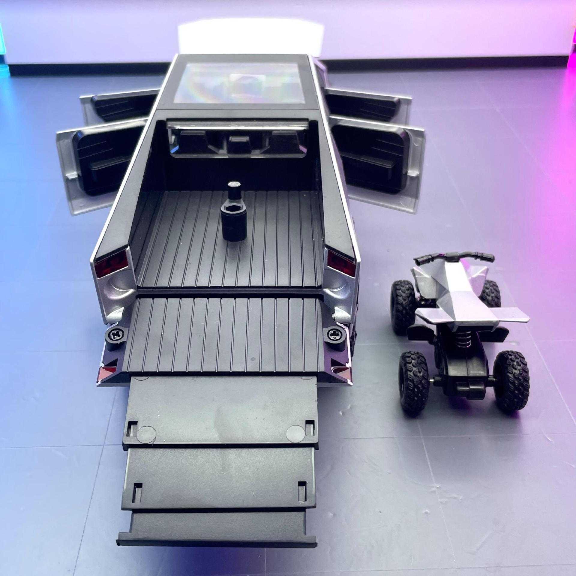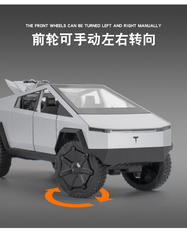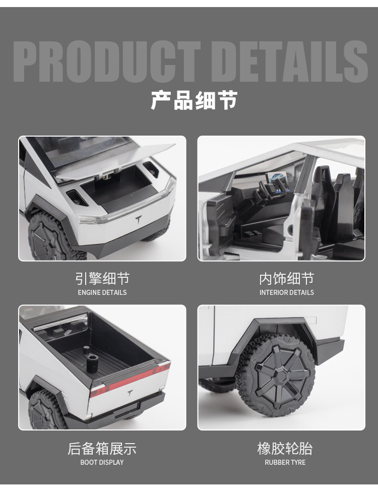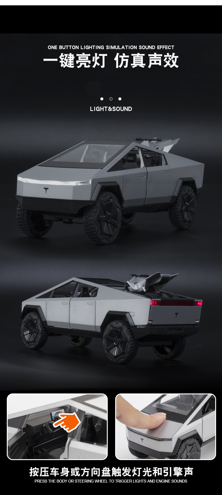 Coche de aleación modelo de coche 1:24 nueva energía Tesla camioneta Tire hacia atrás con sonido y luz fuera de la carretera coche sonido modelo adornos