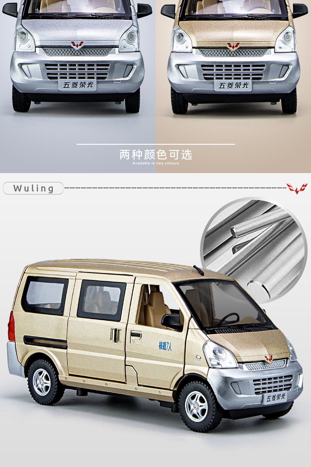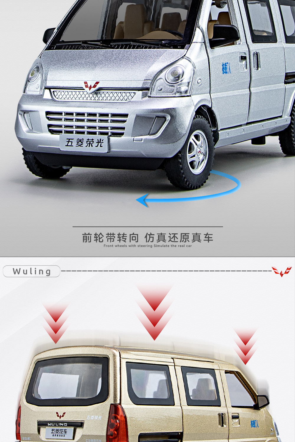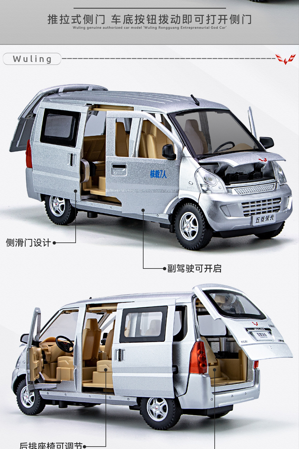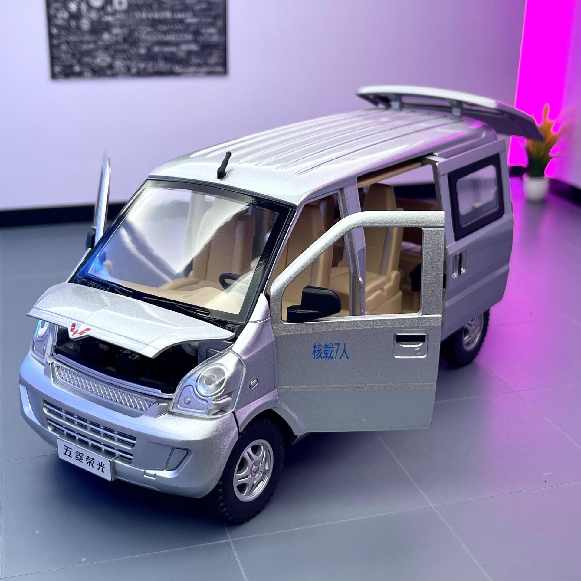 Weili aleación coche modelo genuino autorización 1:24 Wuling Rongguang van tire hacia atrás con sonido y luz coche de juguete música