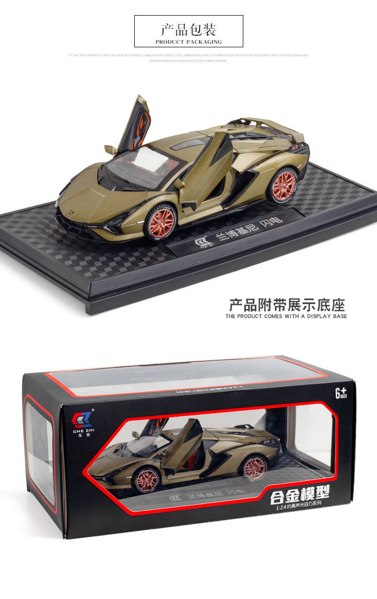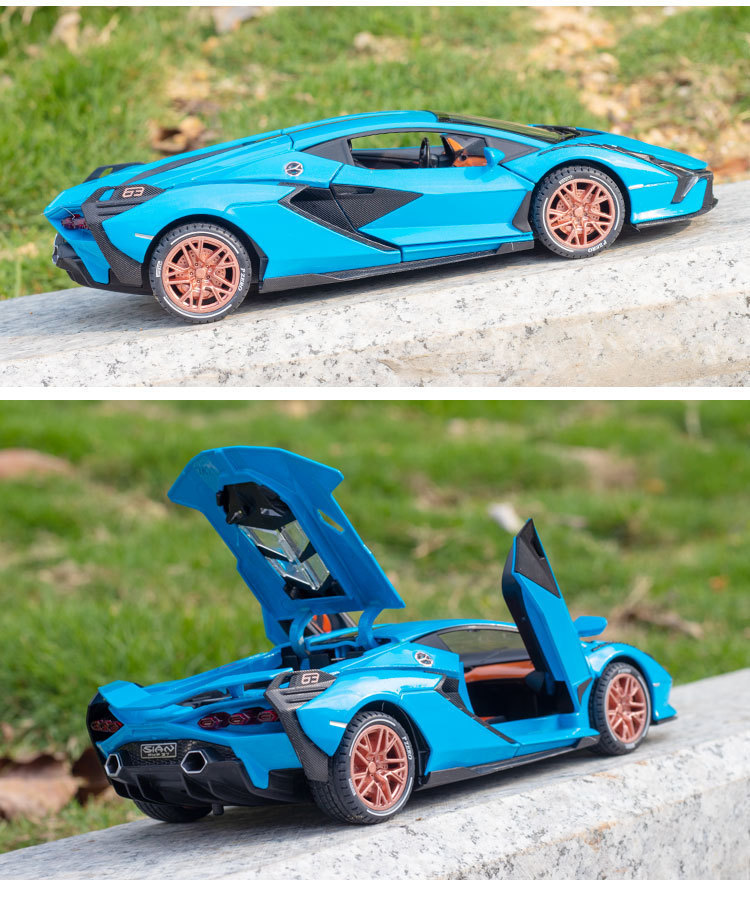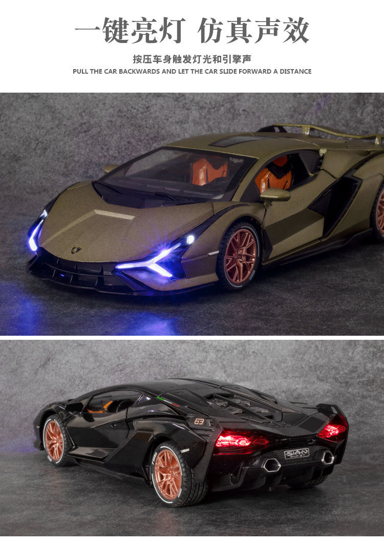 Modelo de coche de aleación de coche 1:24 Lanbo relámpago SIAN tire hacia atrás con sonido y luz niño juguete modelo de coche deportivo adornos
