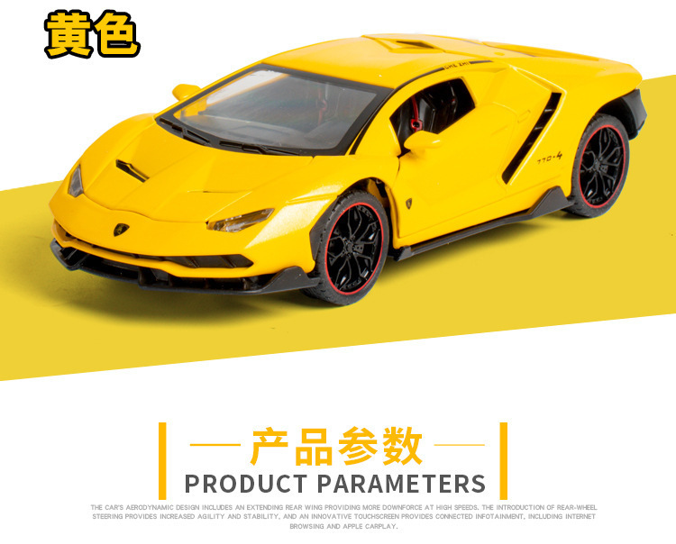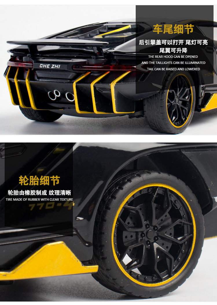 Coche 1: 24 aleación coche modelo Lanbo LP770 coche deportivo Tire hacia atrás sonido y luz de la música modelo de coche de juguete decoración colección