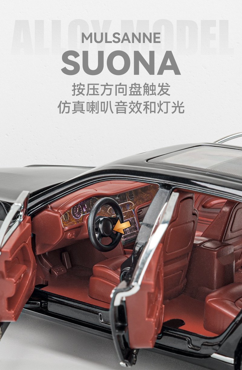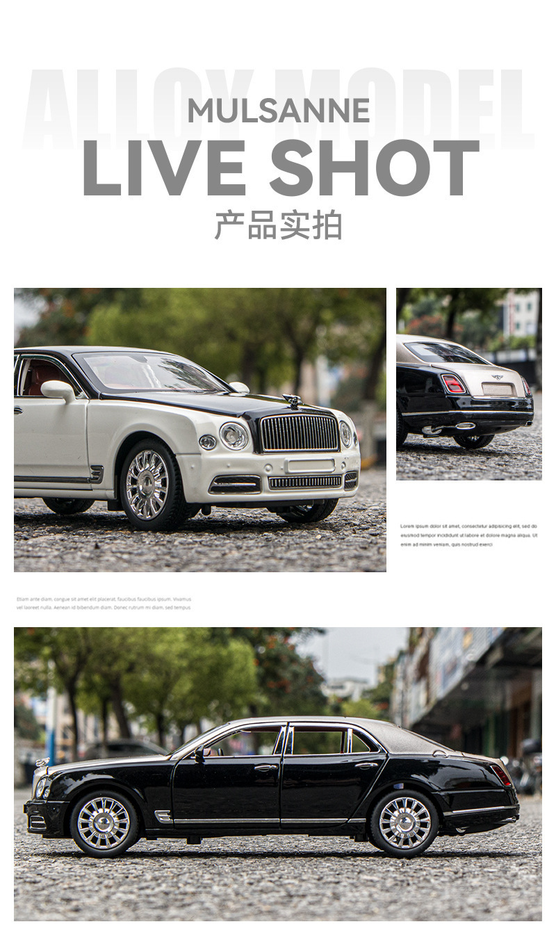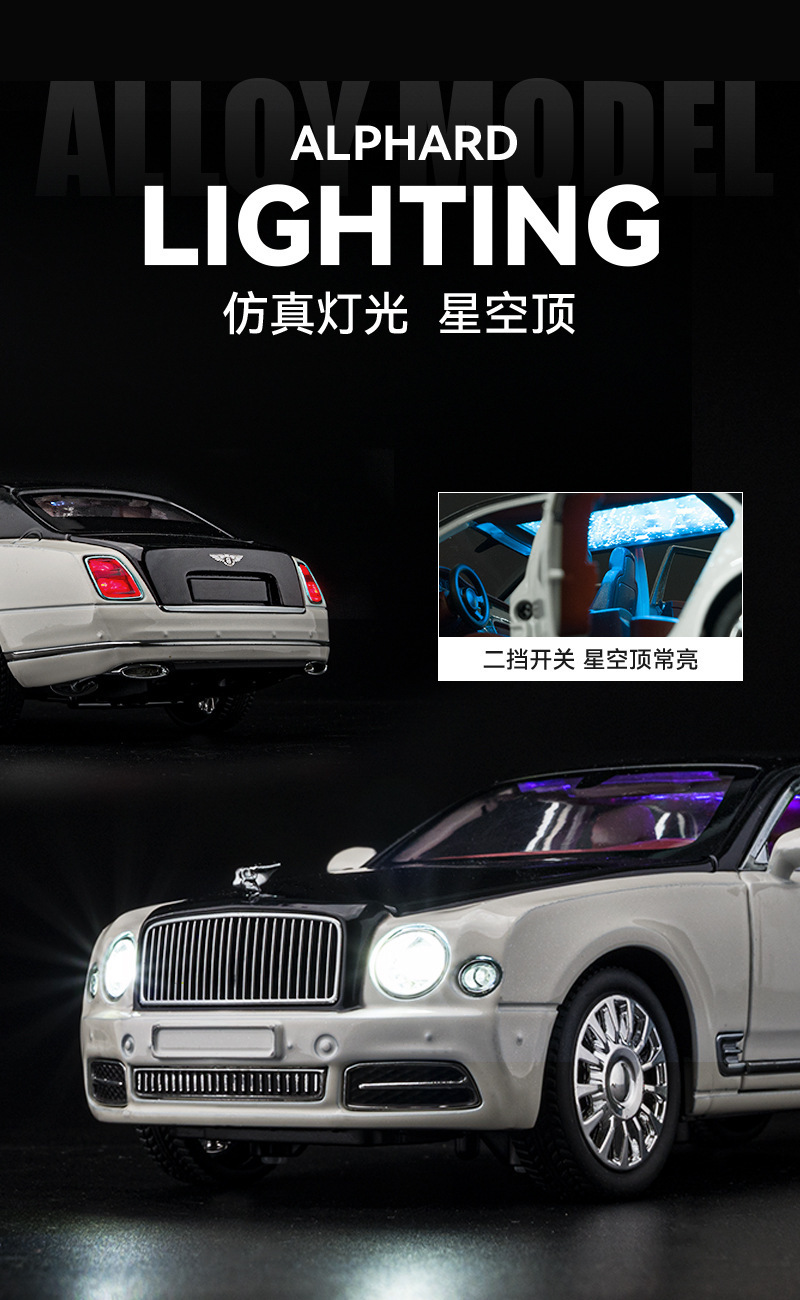 Modelo de coche de aleación 1:24 Bentley Mulsanne, coche de juguete con luz y efectos de sonido, modelo de adorno, venta al por mayor, dropshipping