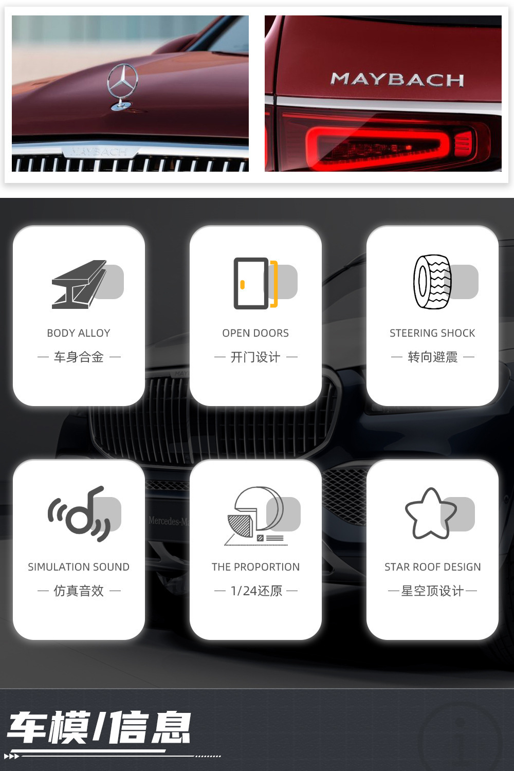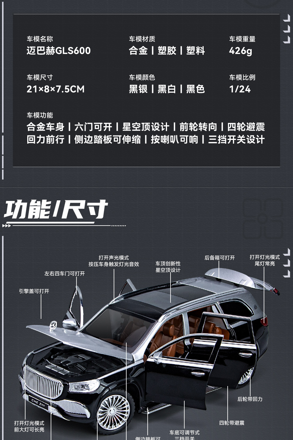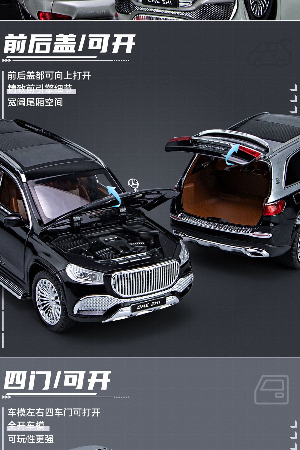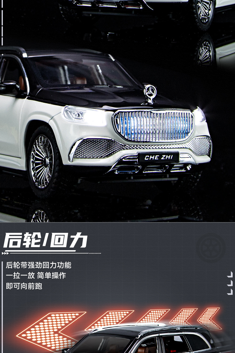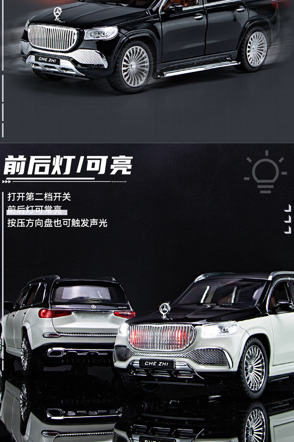Aleación de coche Maybach GLS600 modelo de coche Tire hacia atrás juguete vehículo todoterreno con música ligera colección de decoración de modelos