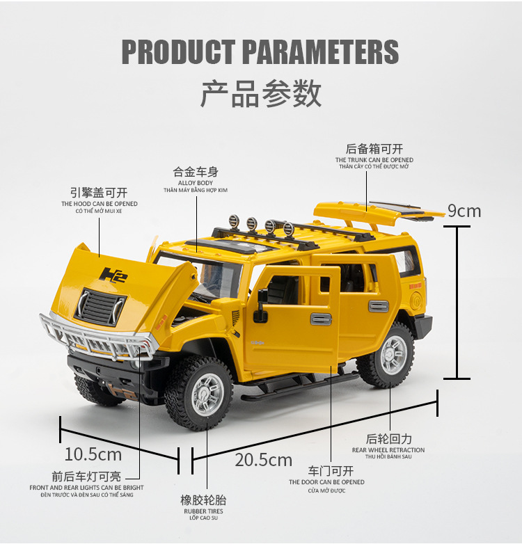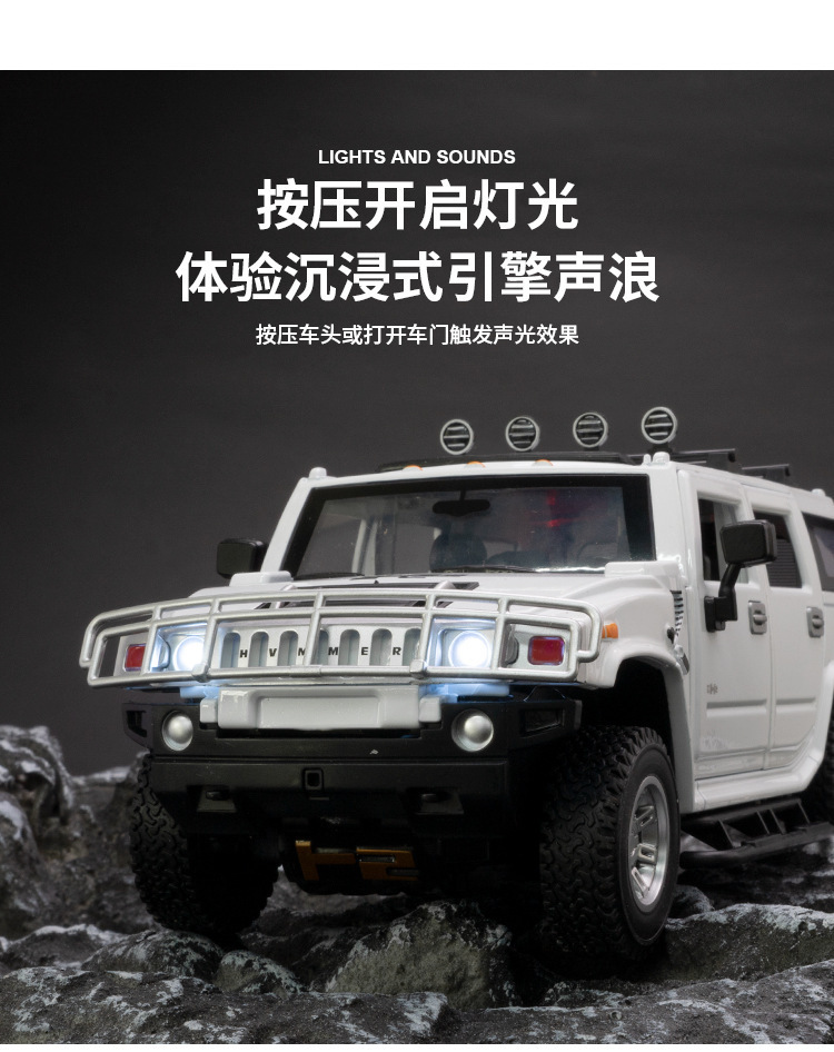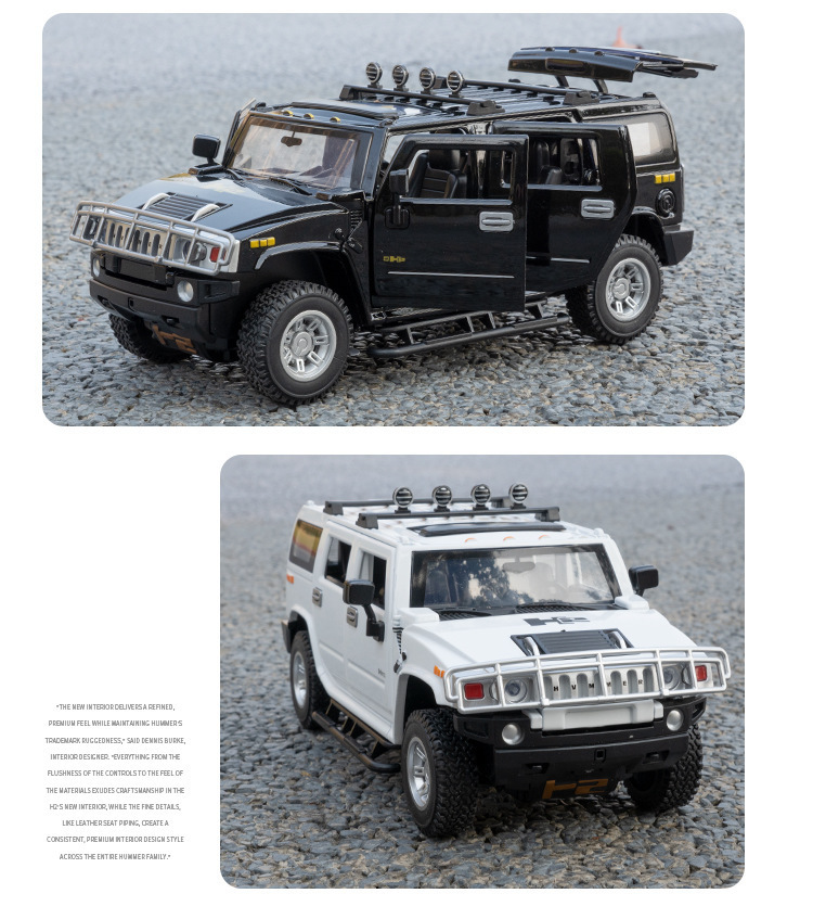 Modelo de coche de aleación Mamba negro 1:24 Hummer H2 alargado vehículo todoterreno sonido y luz Tire hacia atrás juguete coche música modelo adornos