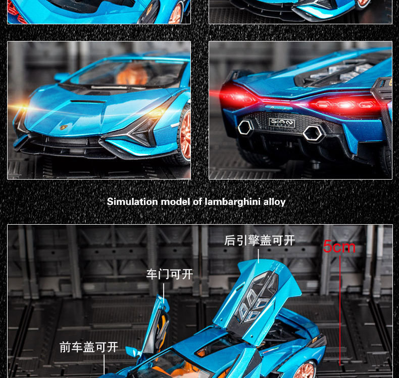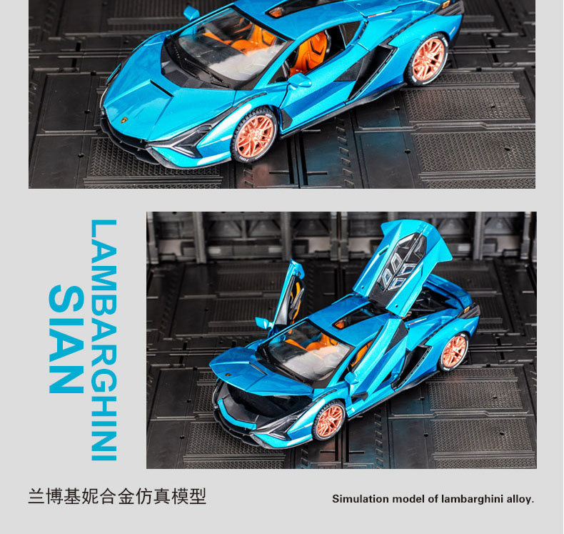 Modelo de coche de aleación famosa 1:24 Lanbo relámpago coche deportivo con sonido Tire hacia atrás la luz del coche de juguete modelo de música adornos
