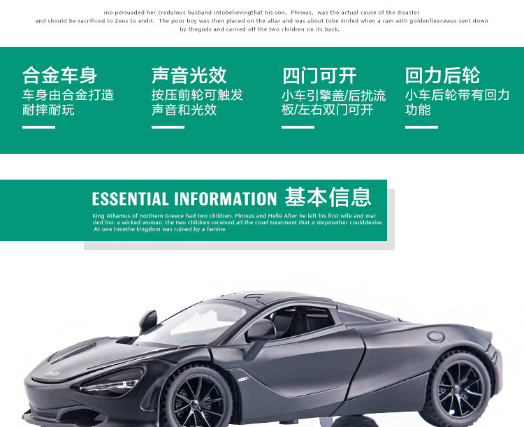 Weili aleación coche modelo 1:32 McLaren 720s coche deportivo sonido pull back luz juguete coche música modelo adornos