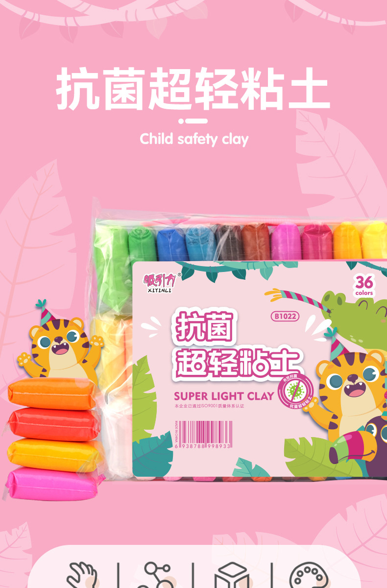 Atractivo ultra-ligero de arcilla de 36 colores en bolsas de jardín de infantes bricolaje traje hecho a mano espacio arcilla rompecabezas plastilina