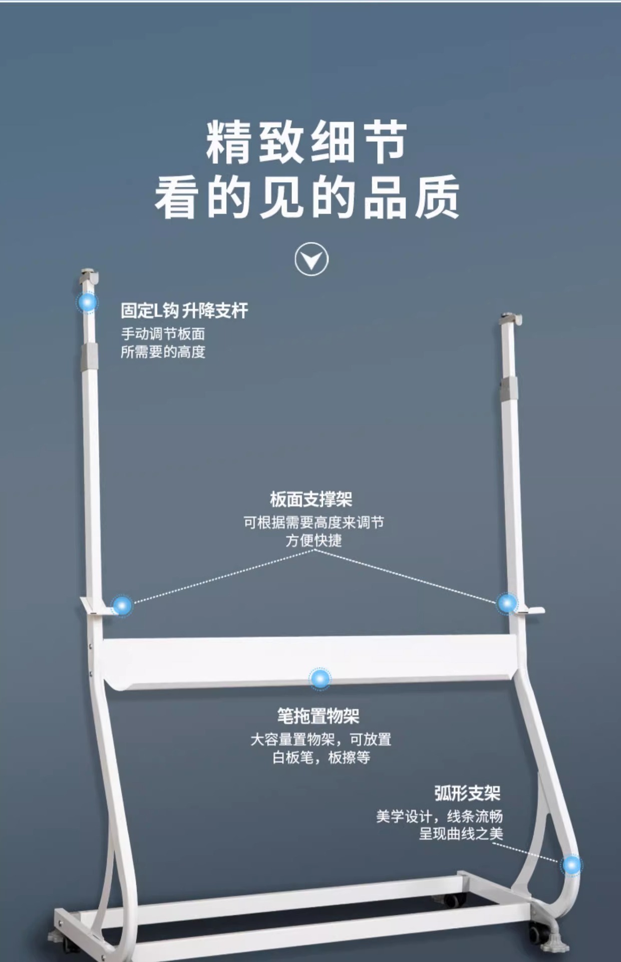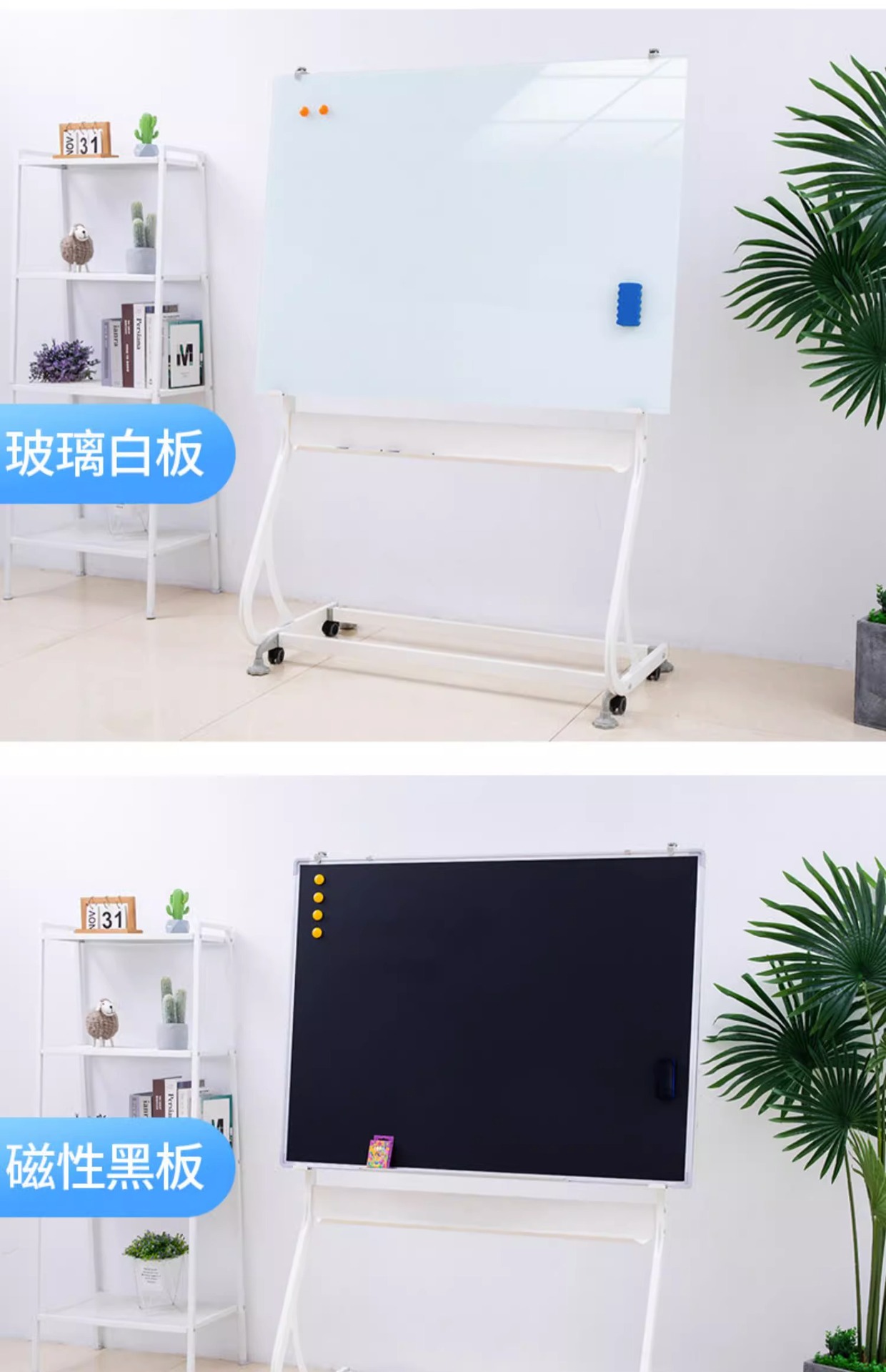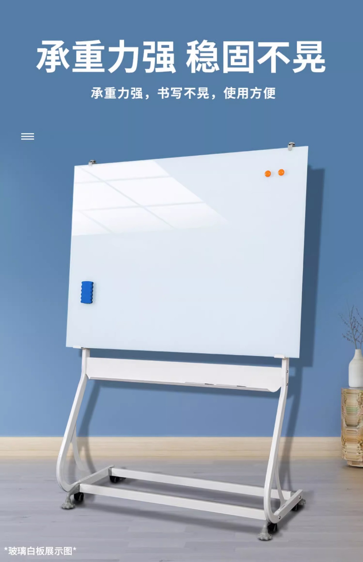 Tablero de escritura del whiteboard del soporte S-tipo Whiteboard vertical movible magnético de un solo lado del hogar de la Oficina del soporte