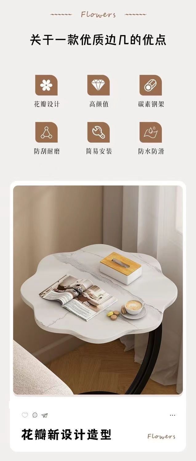 Mesa lateral de pétalos de estilo nórdico, estante de cabecera simple, sofá de sala de estar, mesa auxiliar, mesa de centro pequeña simple, mesita de noche simple