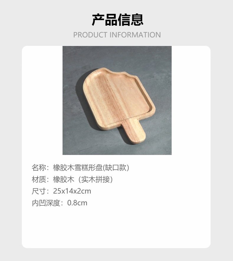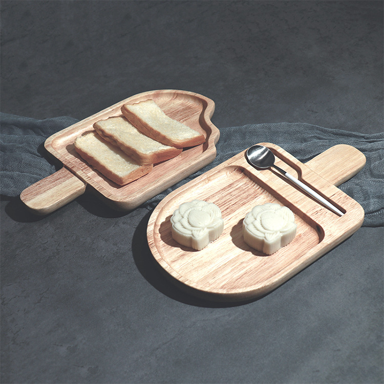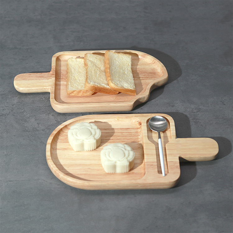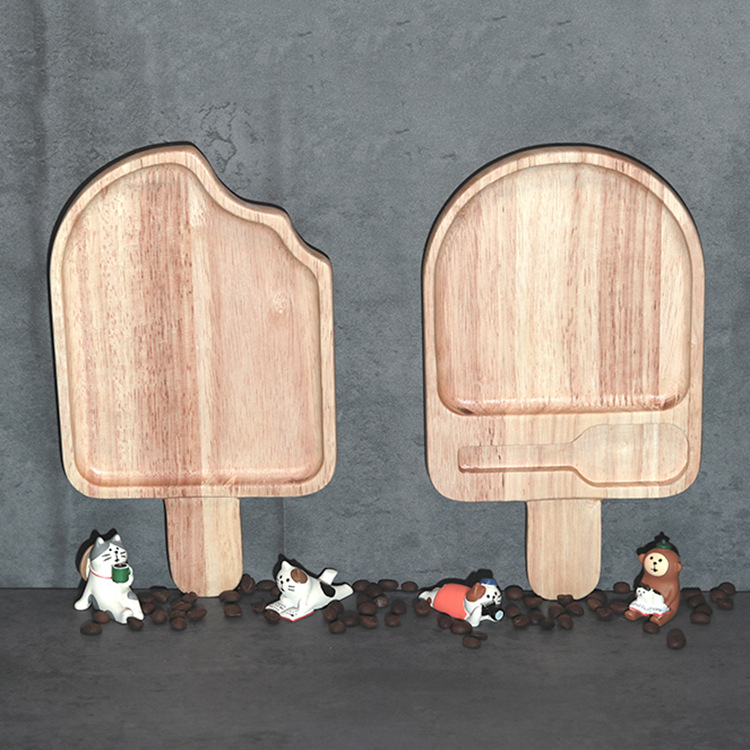 Bandeja de madera de goma creativa de dibujos animados desayuno hogar madera maciza niños jardín de infantes vajilla postre helado en forma de placa