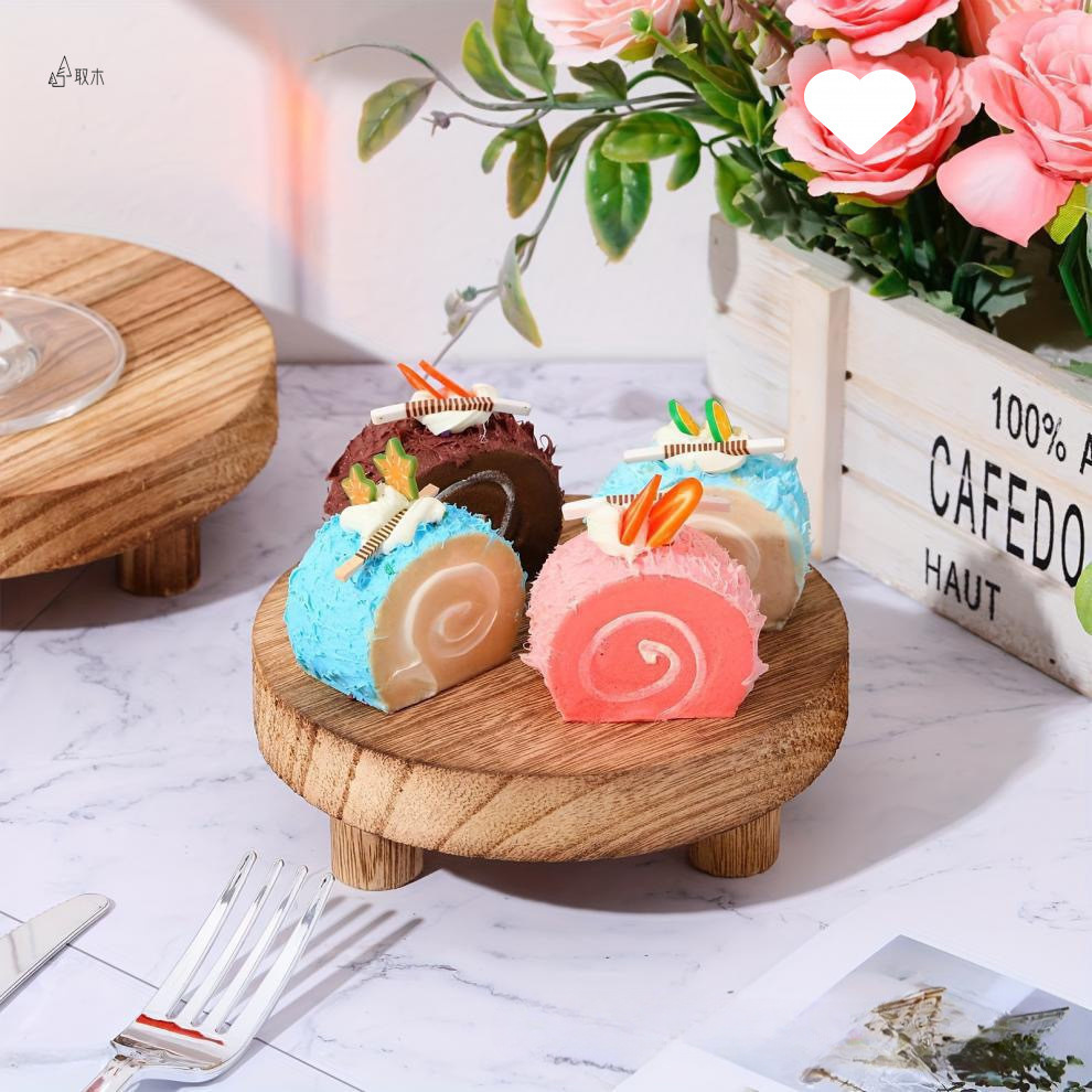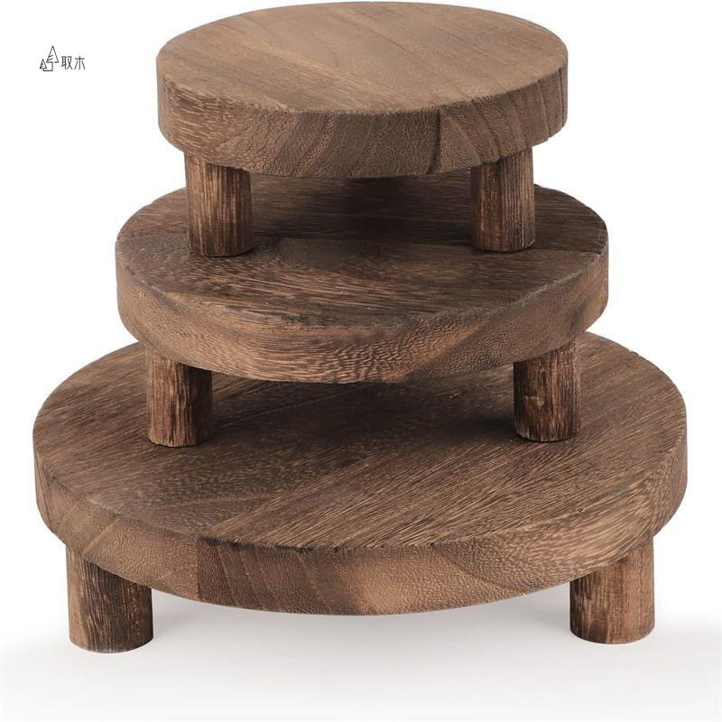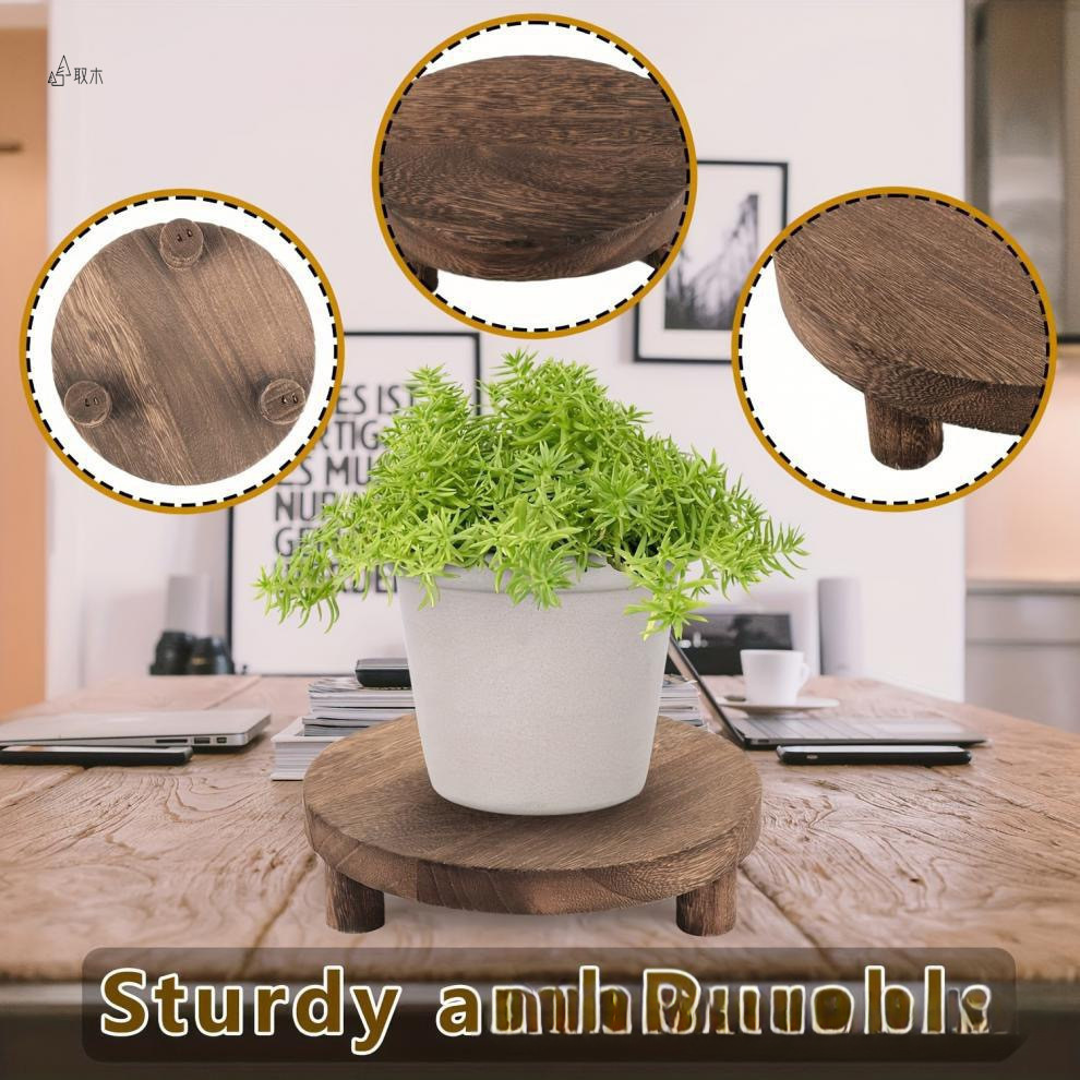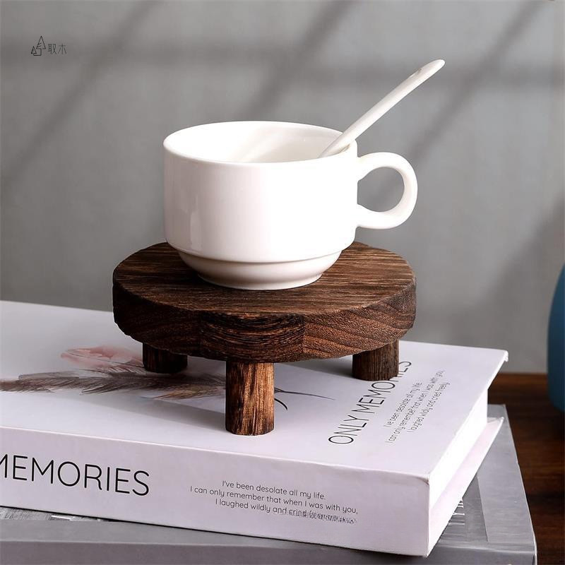 Soporte base de taza de café marrón de madera rústica, bandeja de madera de nogal negro, maceta redonda, soporte inferior carnoso