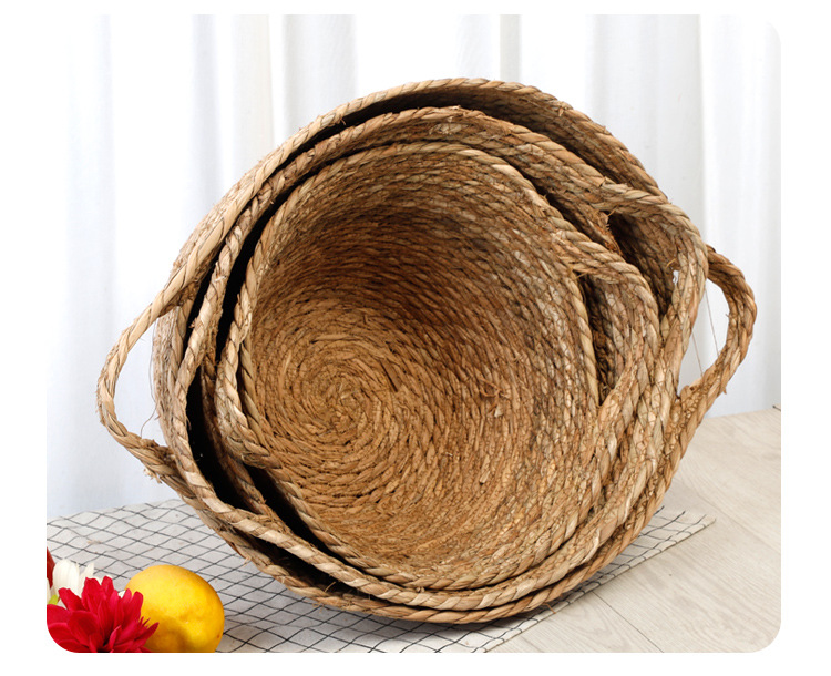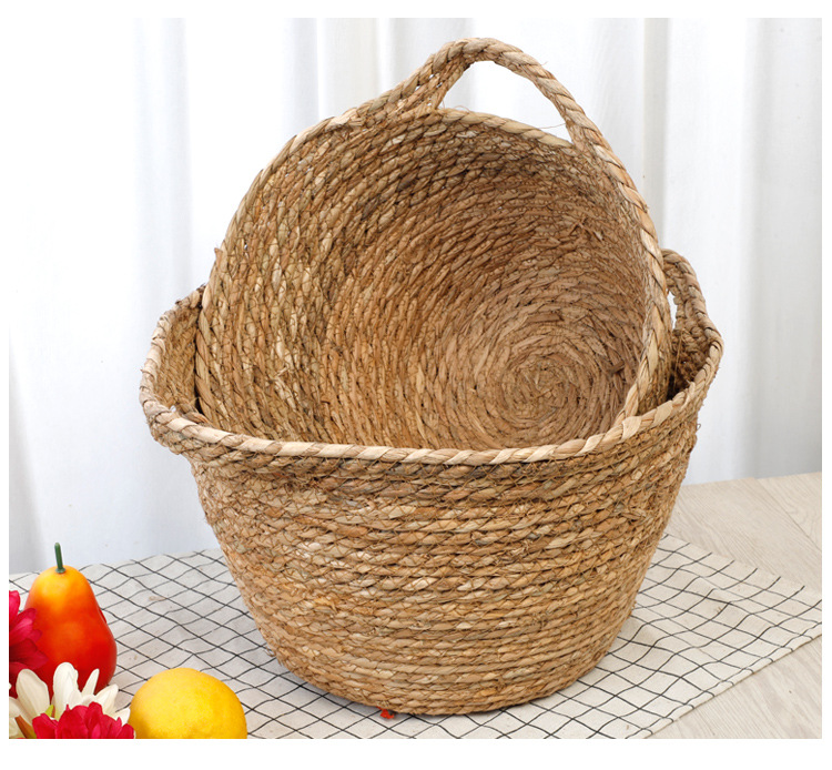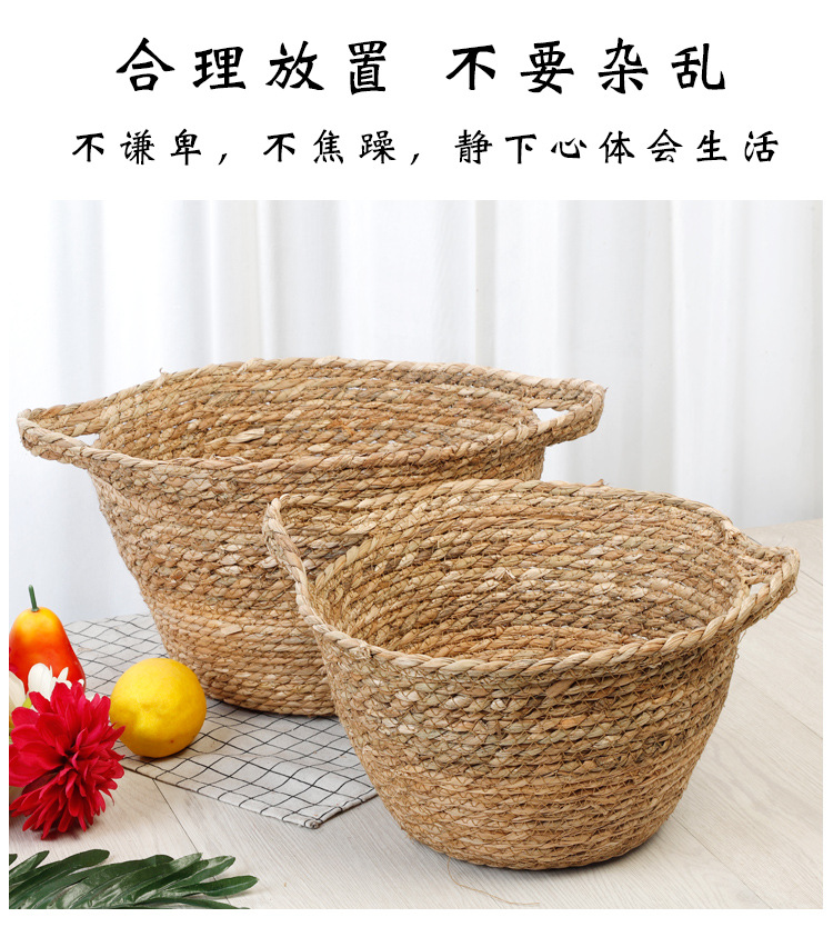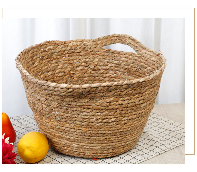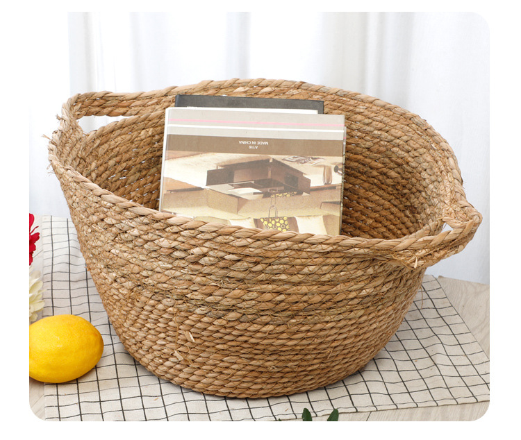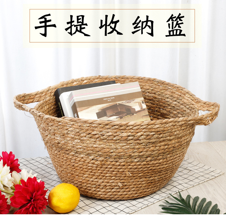 Cesta de almacenamiento portátil tejida de Sauce de hierba de estilo japonés creativo ropa redonda juguete merienda cesta de almacenamiento accesorios de tiro