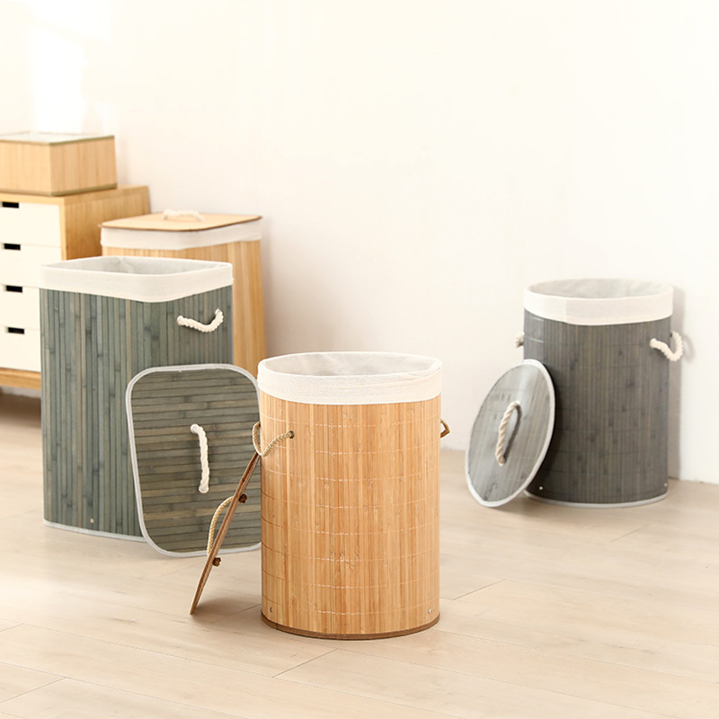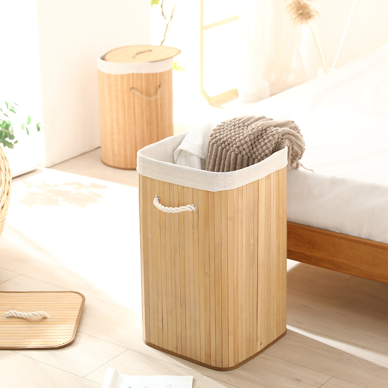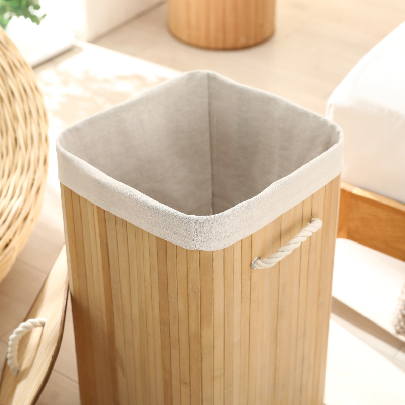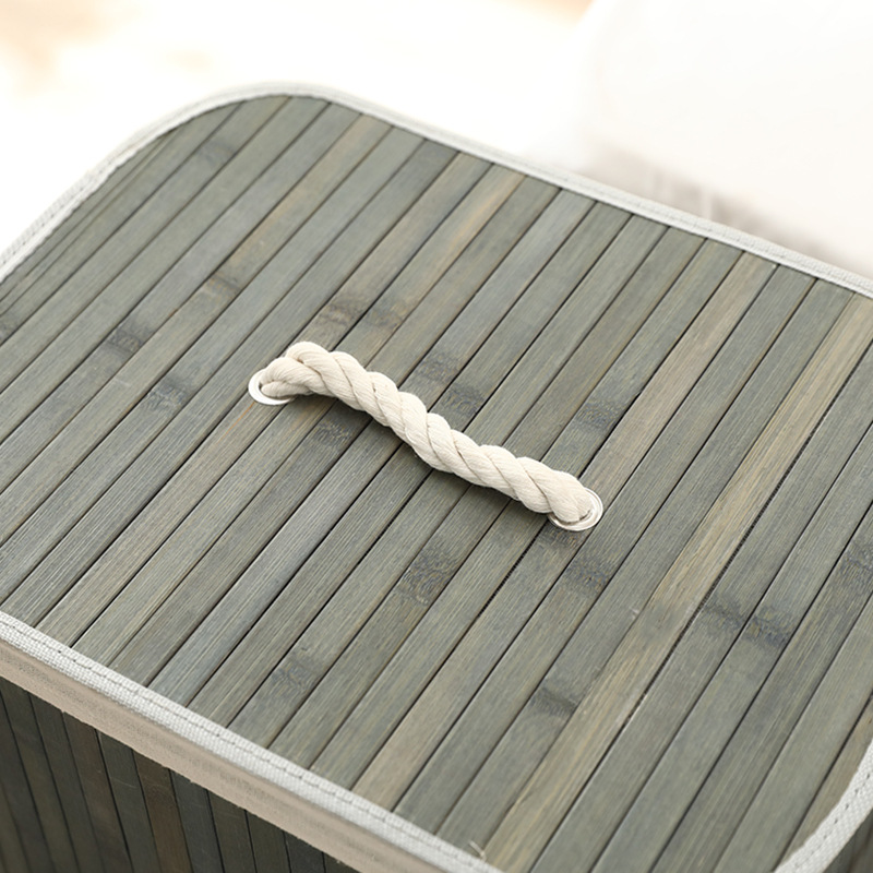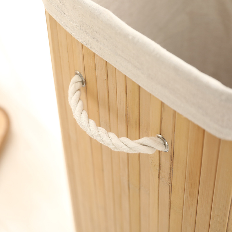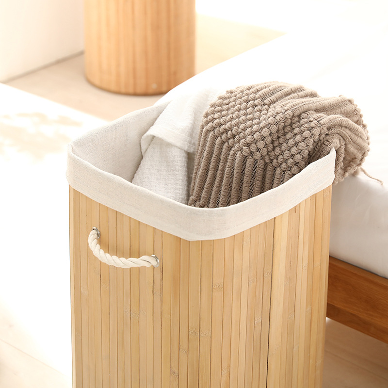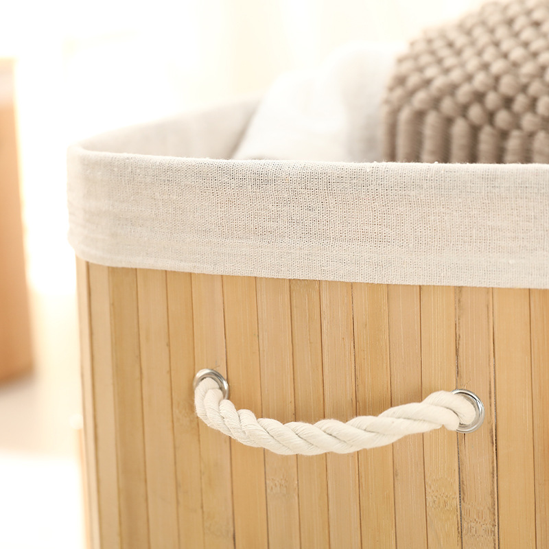 Cesta organizadora de bambú y lino, contenedor de ropa sucia o juguetes, diseño natural, venta al por mayor