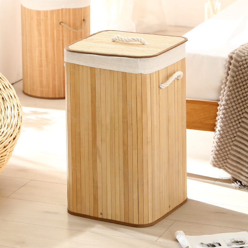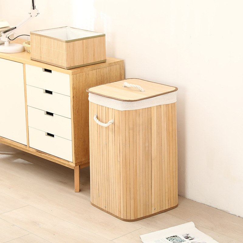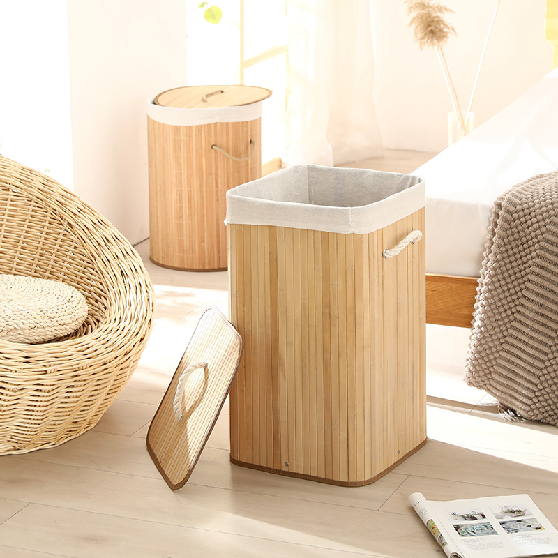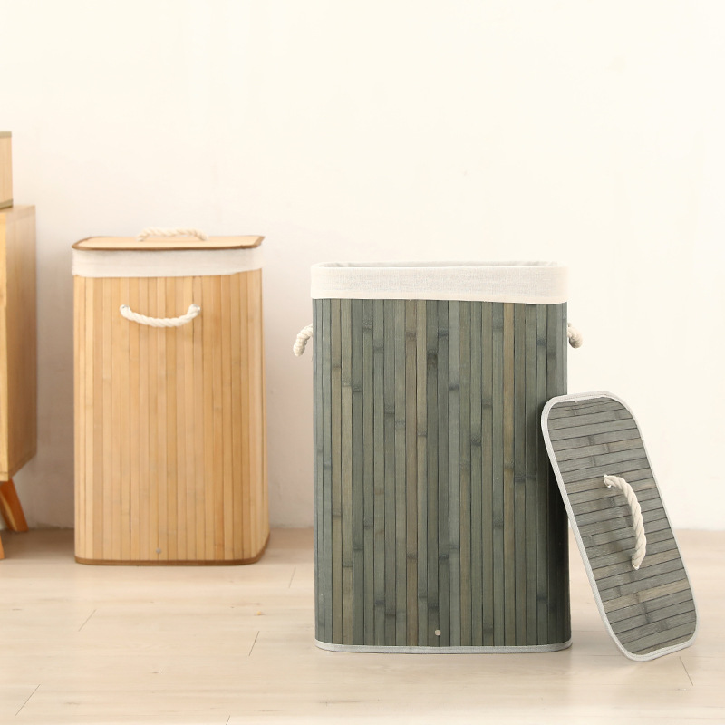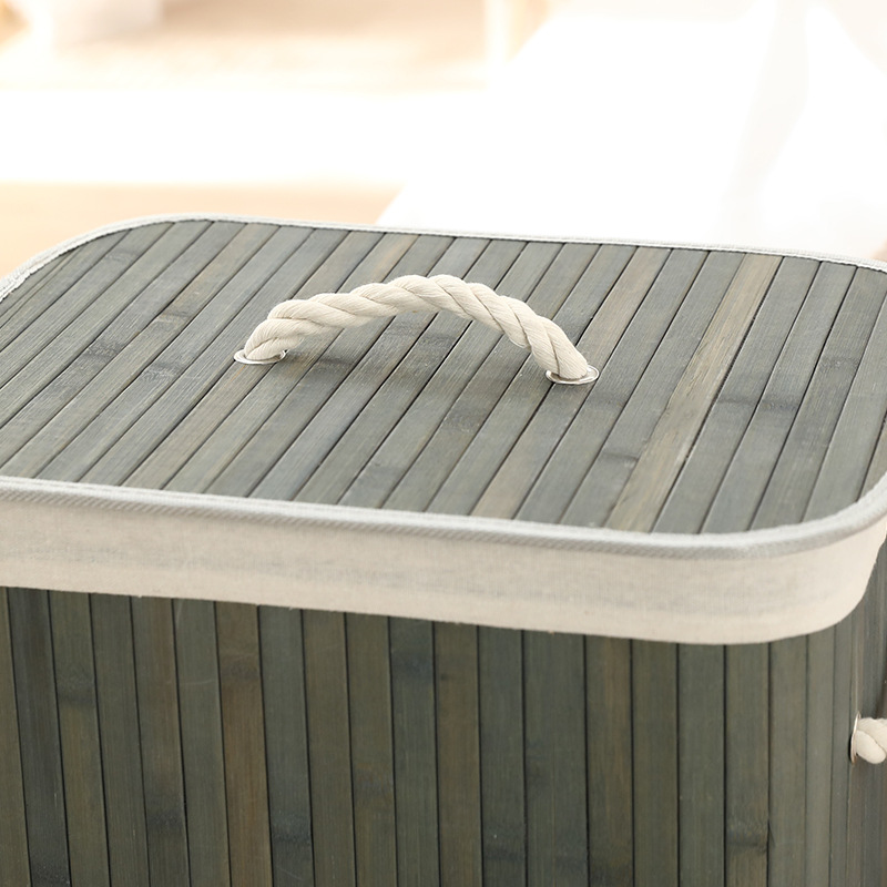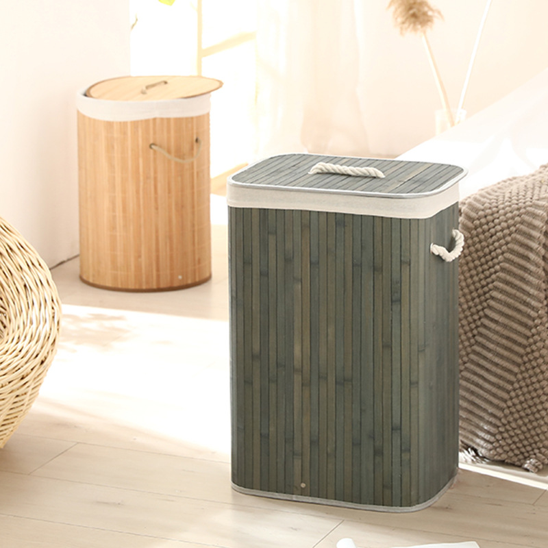 Cesta organizadora de bambú y lino, contenedor de ropa sucia o juguetes, diseño natural, venta al por mayor