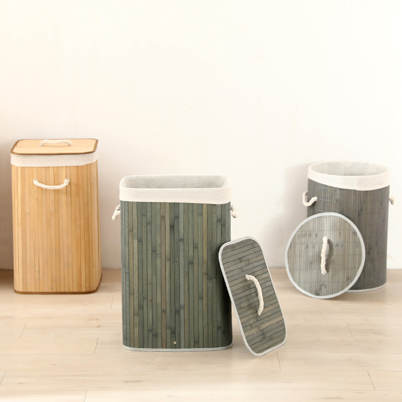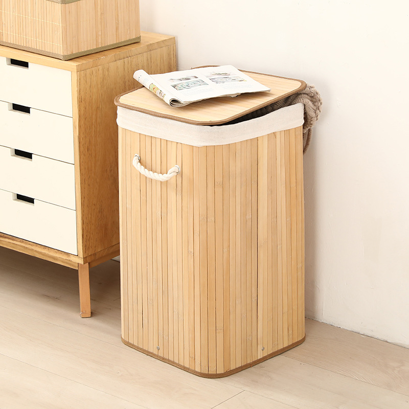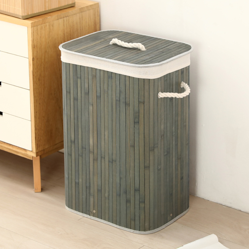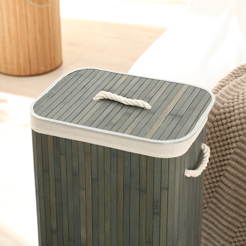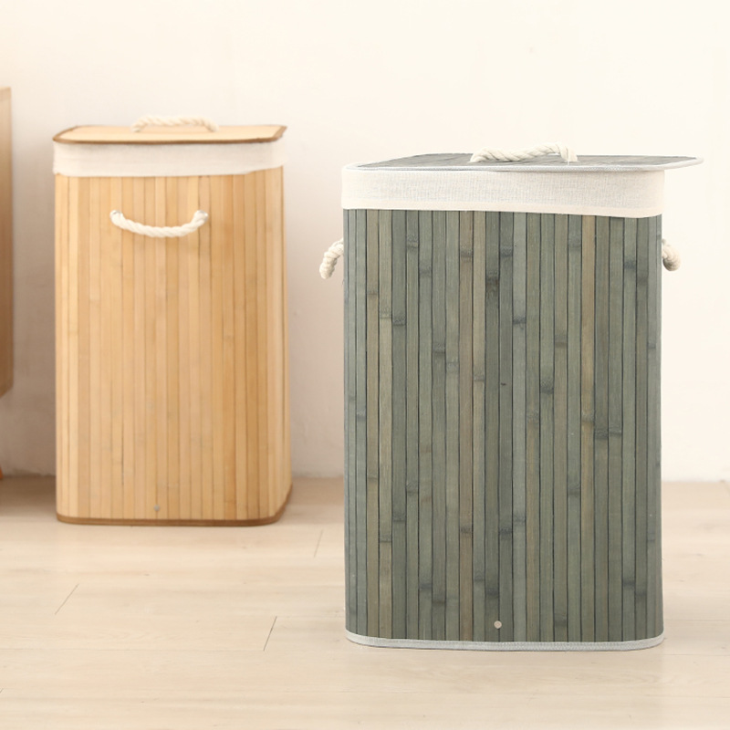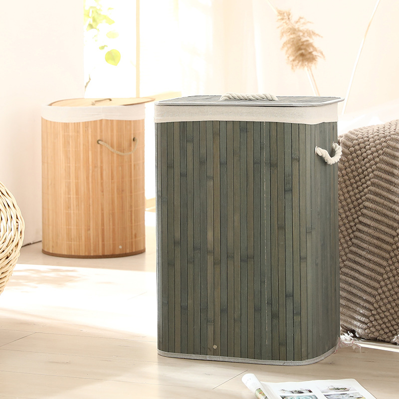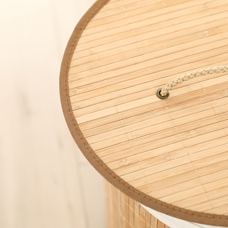 Cesta organizadora de bambú y lino, contenedor de ropa sucia o juguetes, diseño natural, venta al por mayor