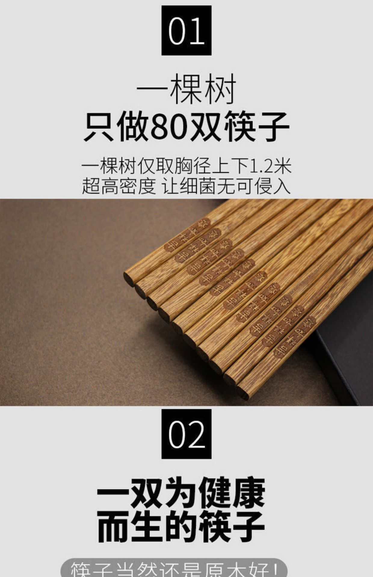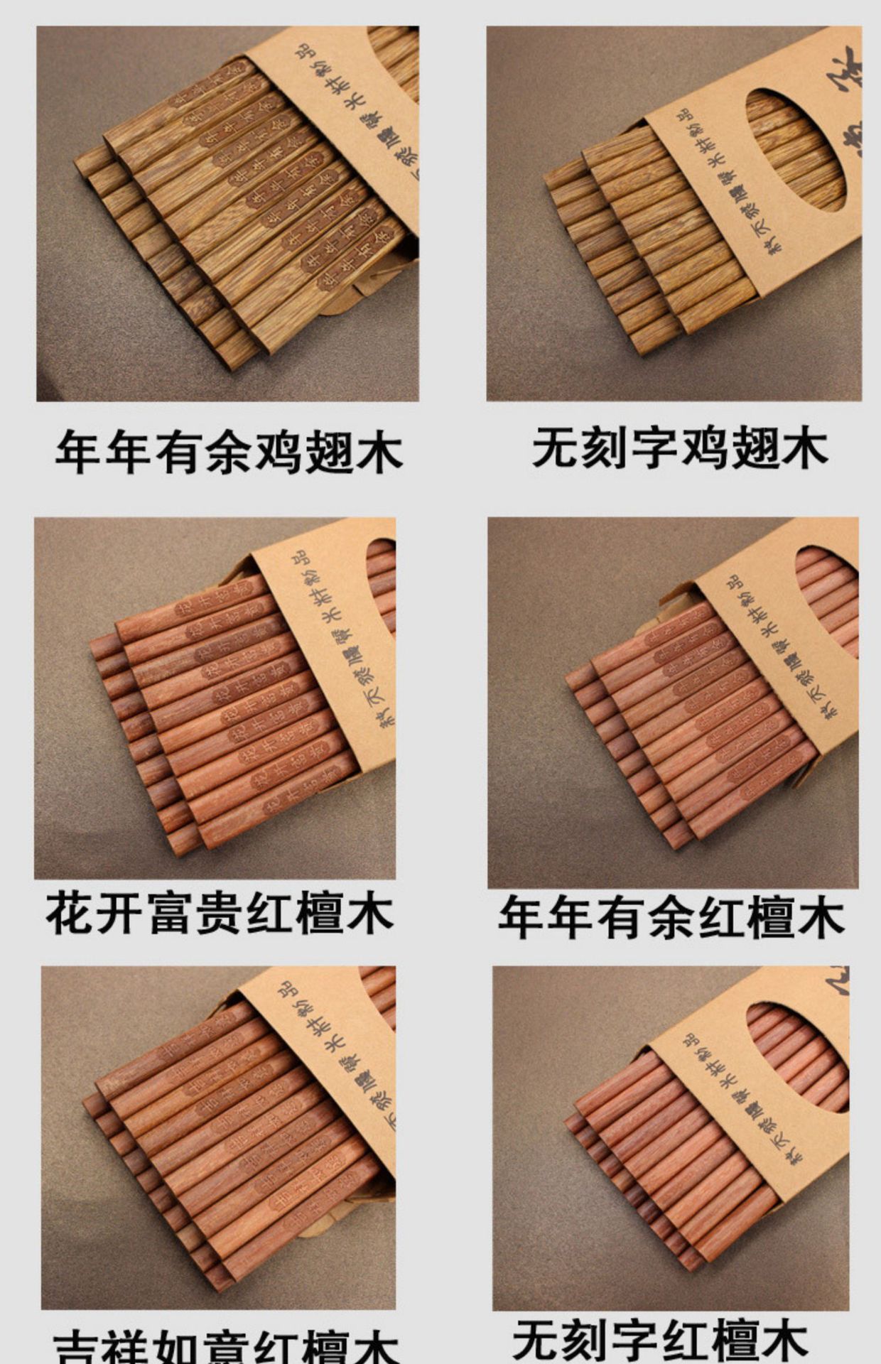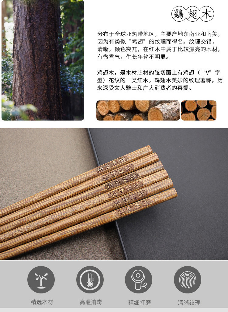 Palillos de madera de ala de pollo para el hogar 10 pares al por mayor Palillos antideslizantes de madera maciza sin pintura y sin cera Palillos de letras Palillos de regalo en stock