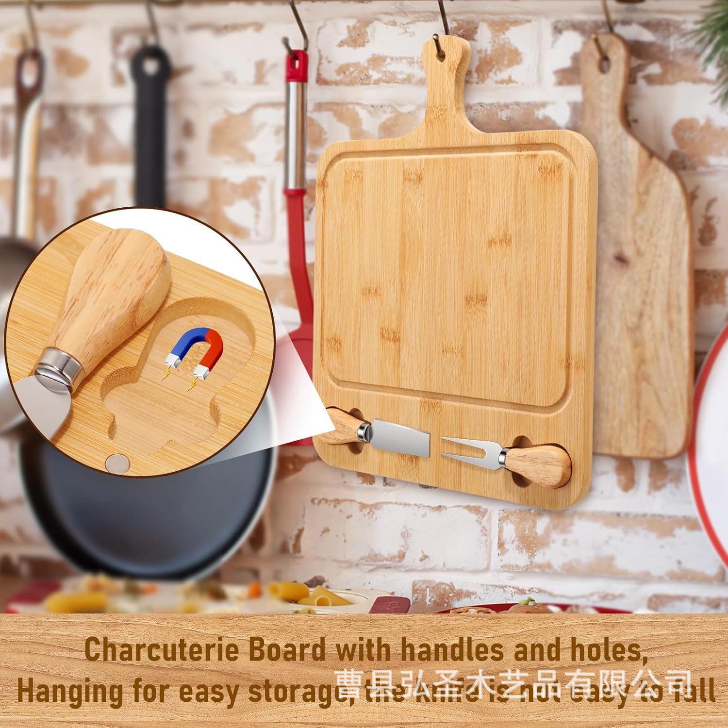 Nuevo producto Tablero de queso de bambú Hogar de madera maciza de doble cara Pizza disponible Tablero de perforación de sushi Tablero de perforación de madera con manija