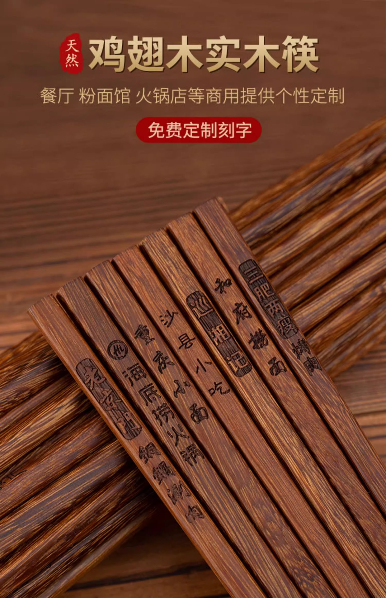 Sin pintura, sin cera, madera maciza, alitas de pollo, palillos de madera, LOGO tallado personalizado, antideslizante, olla caliente comercial, vajilla frita, palillos al por mayor