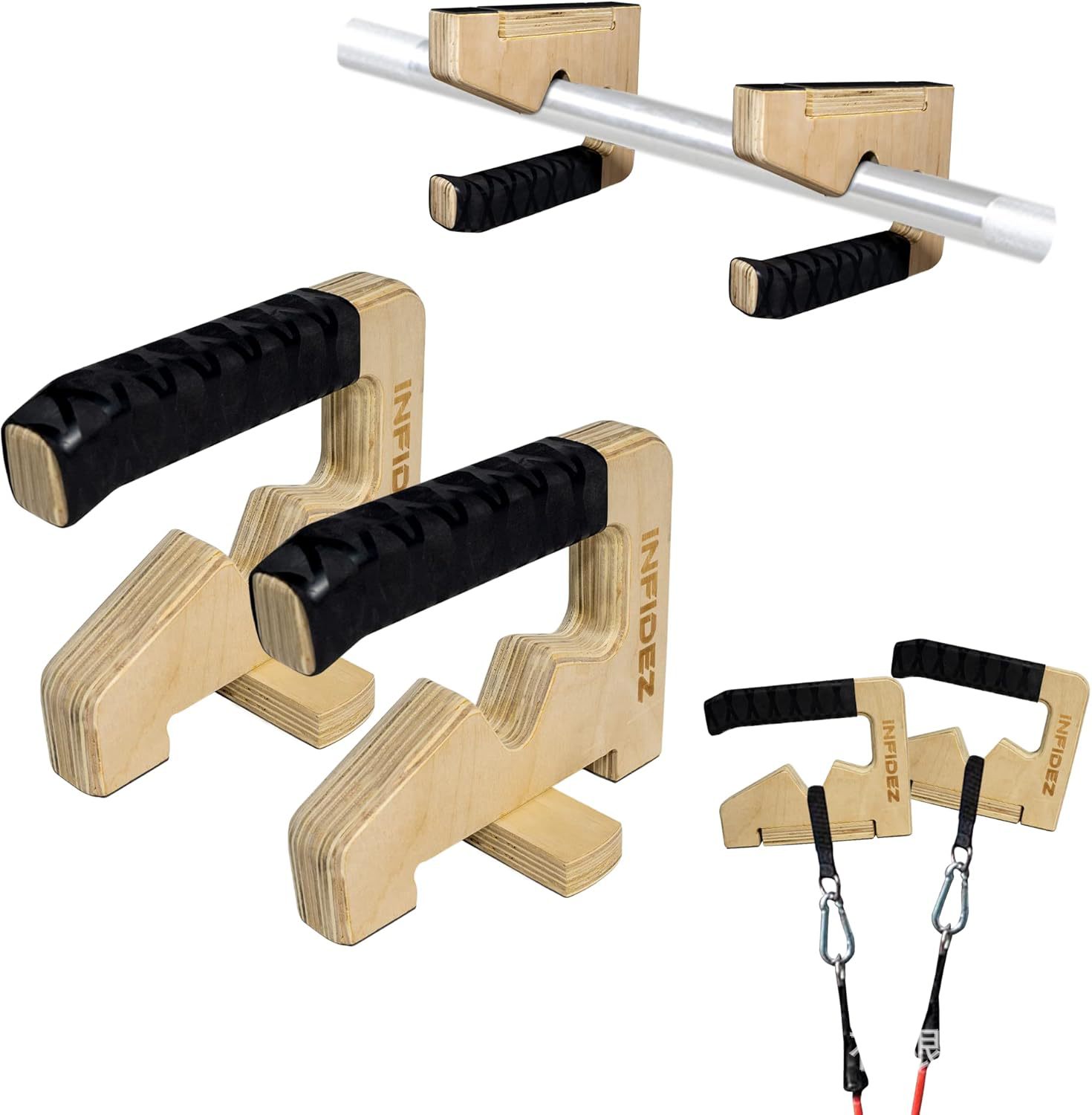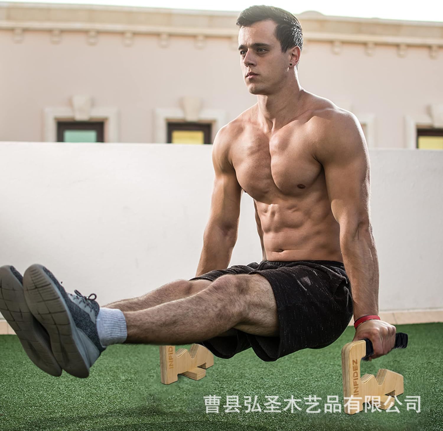 Soporte de madera tres en uno Soporte de manija de flexiones Soporte de dominadas Palanca de madera maciza para deportes al aire libre Equipo de fitness