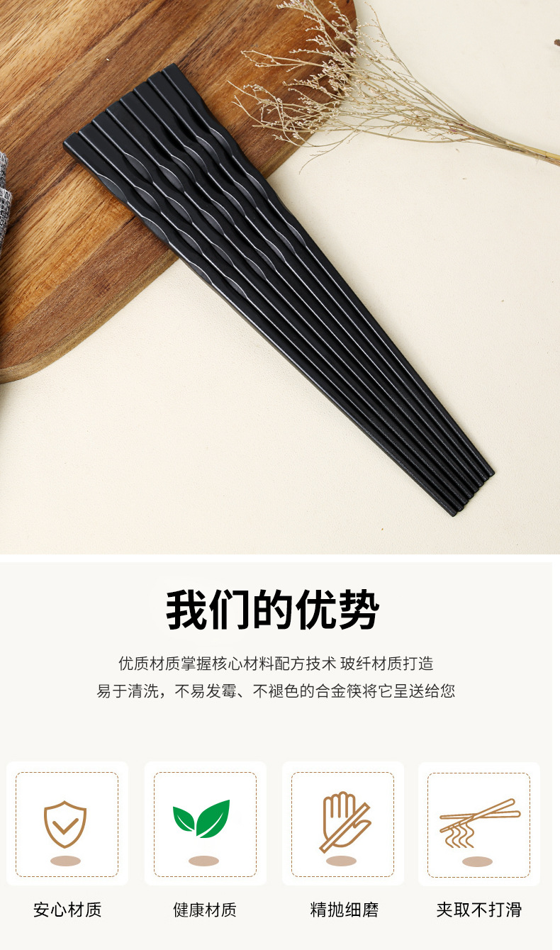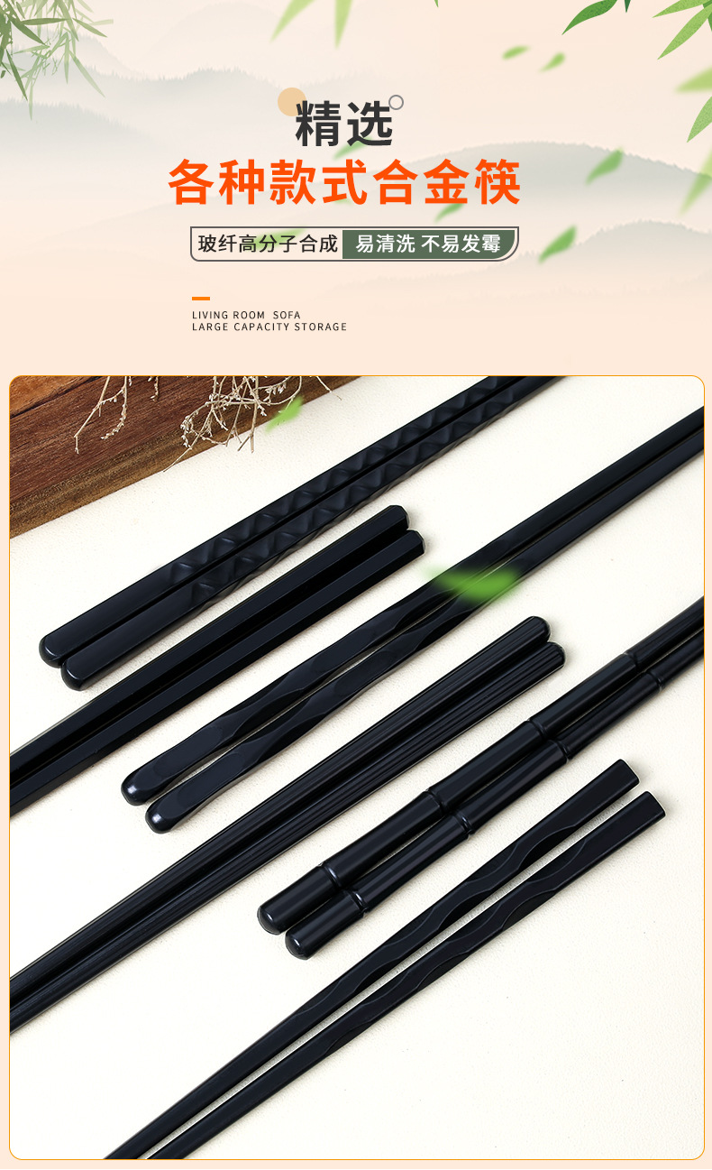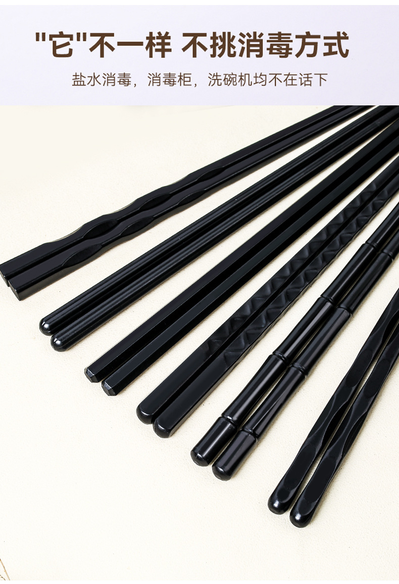 Nuevo hogar palillos de aleación de estilo japonés palillos puntiagudos palillos negros de alto aspecto palillos sin moho kuaizi al por mayor