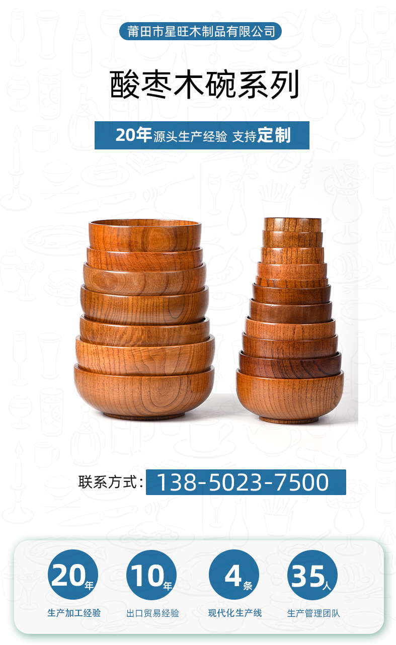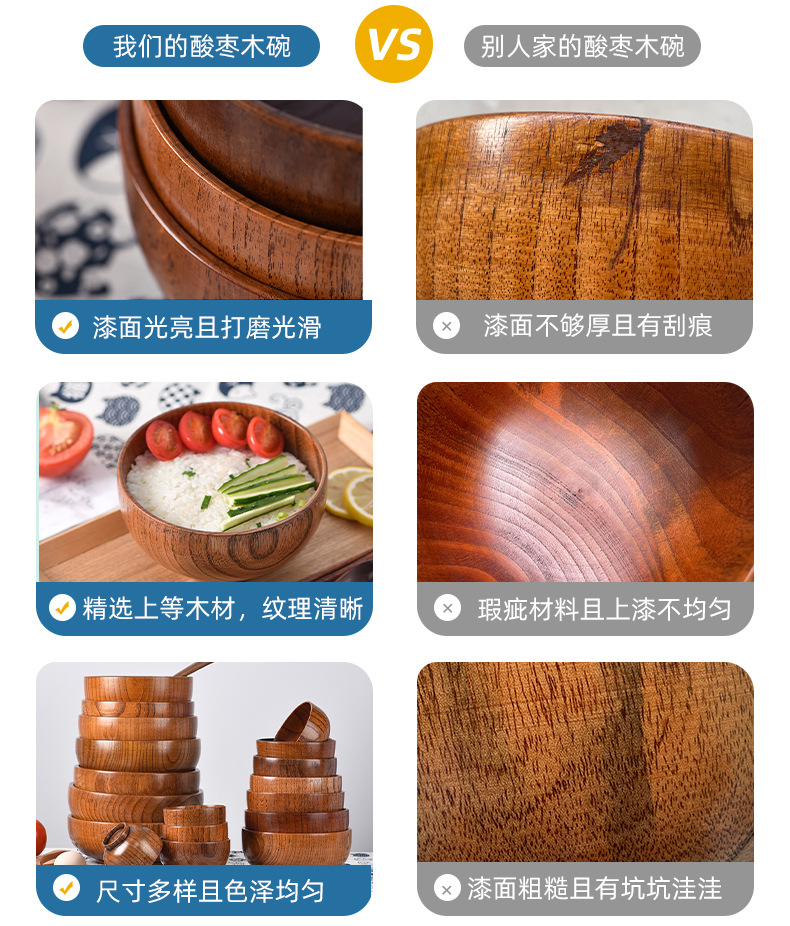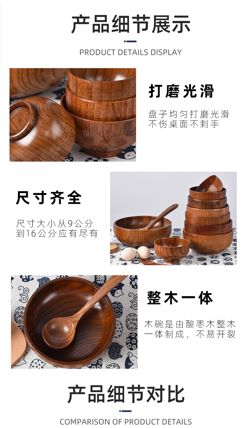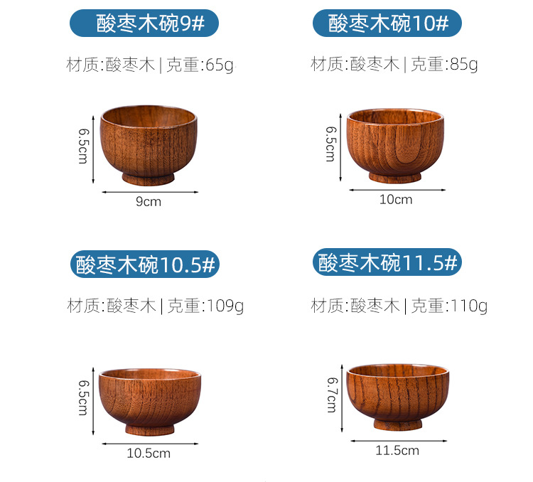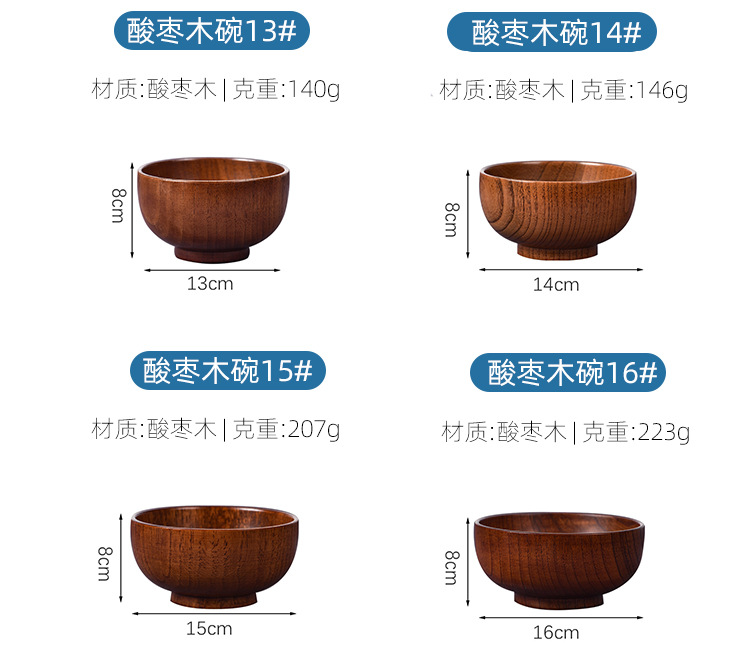 Fabricante en stock japonés hogar natural madera entera adultos niños tazón de fideos instantáneos arroz tazón amargo Jujube tazón de madera vajilla al por mayor