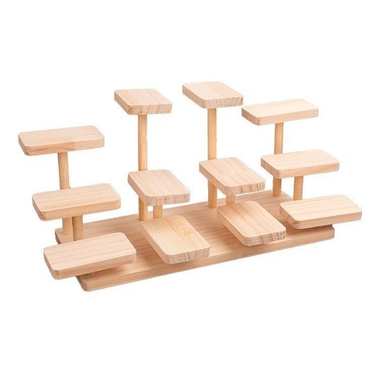 Soporte de flores Soporte de escalera multicapa Soporte de decoración de cosméticos de almacenamiento de mesa de madera maciza Soporte de decoración de caja ciega