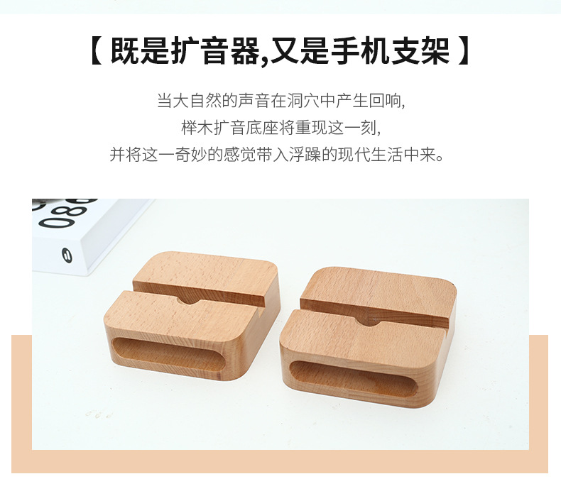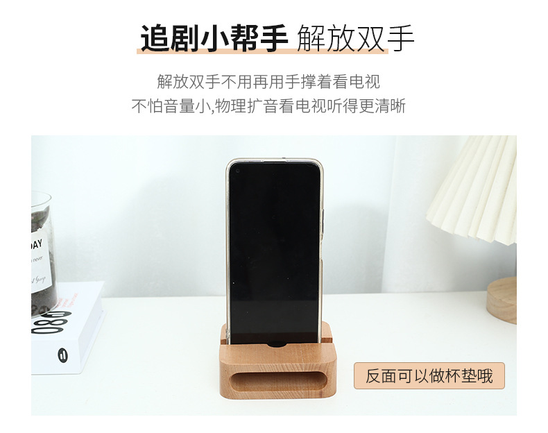 Teléfono móvil de madera micrófono físico escritorio teléfono móvil soporte altavoz perezoso amplificador soporte base