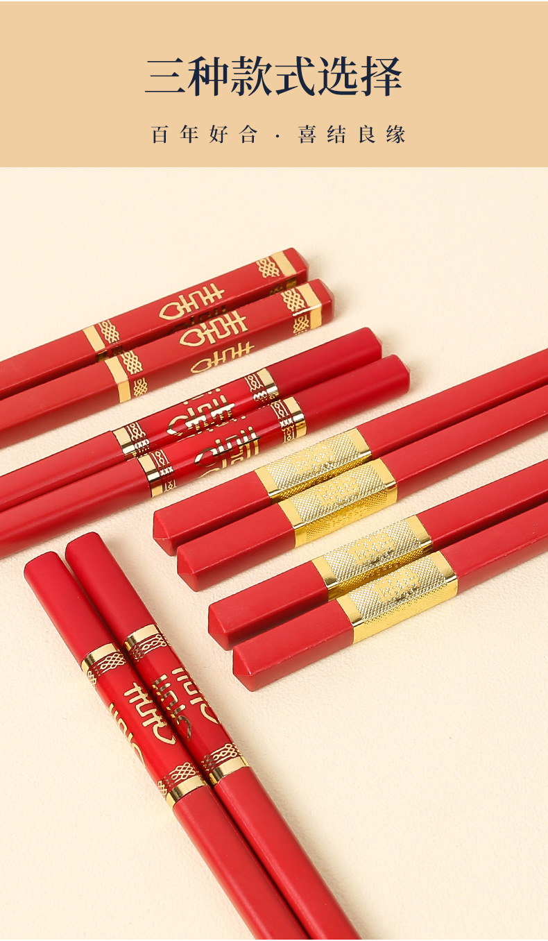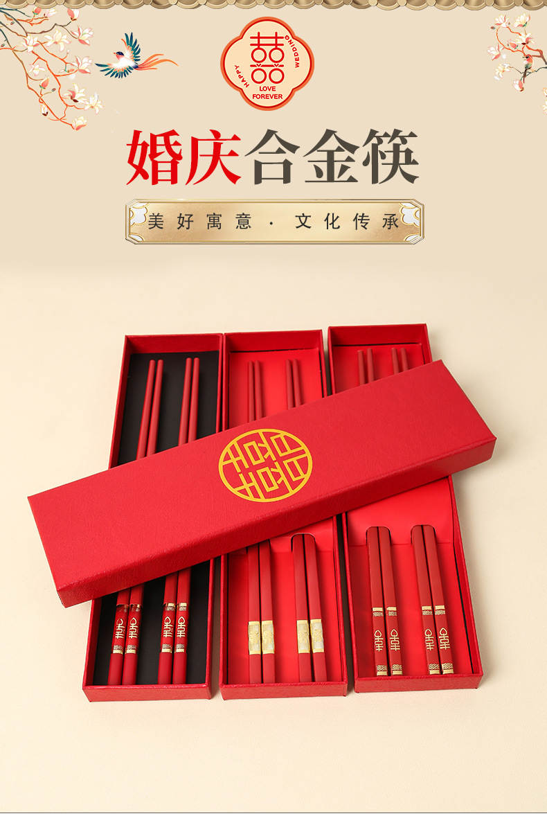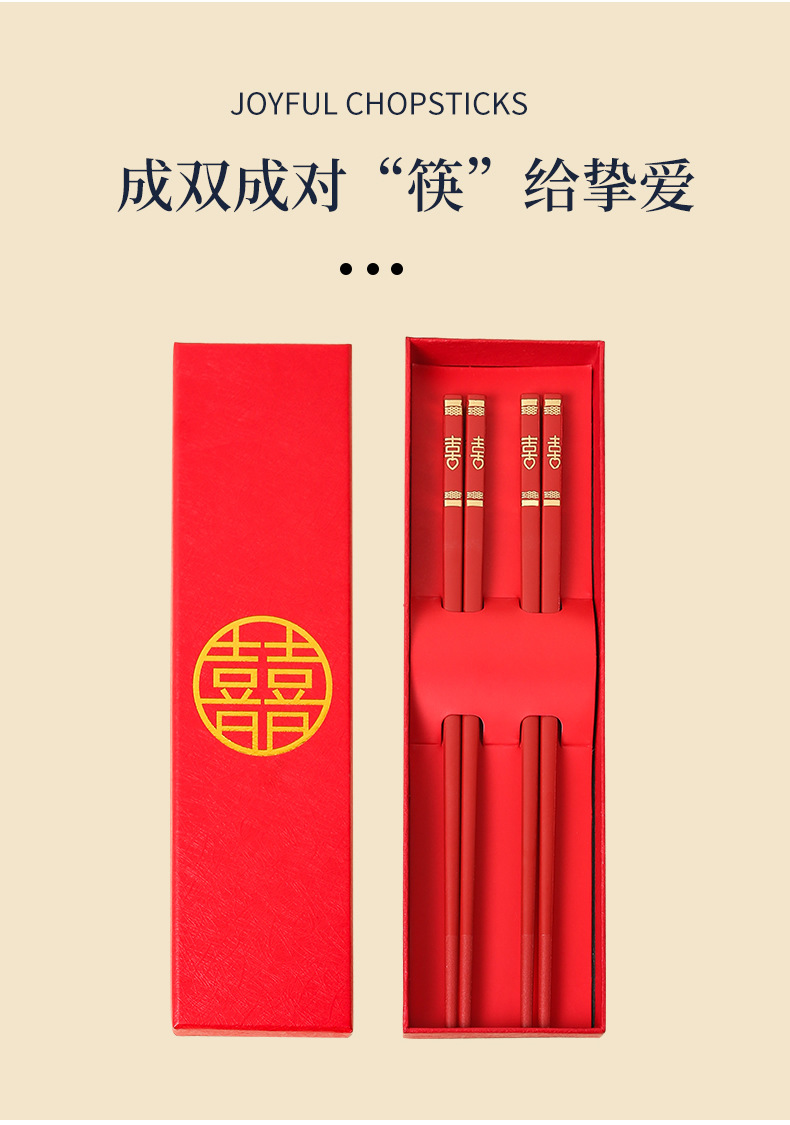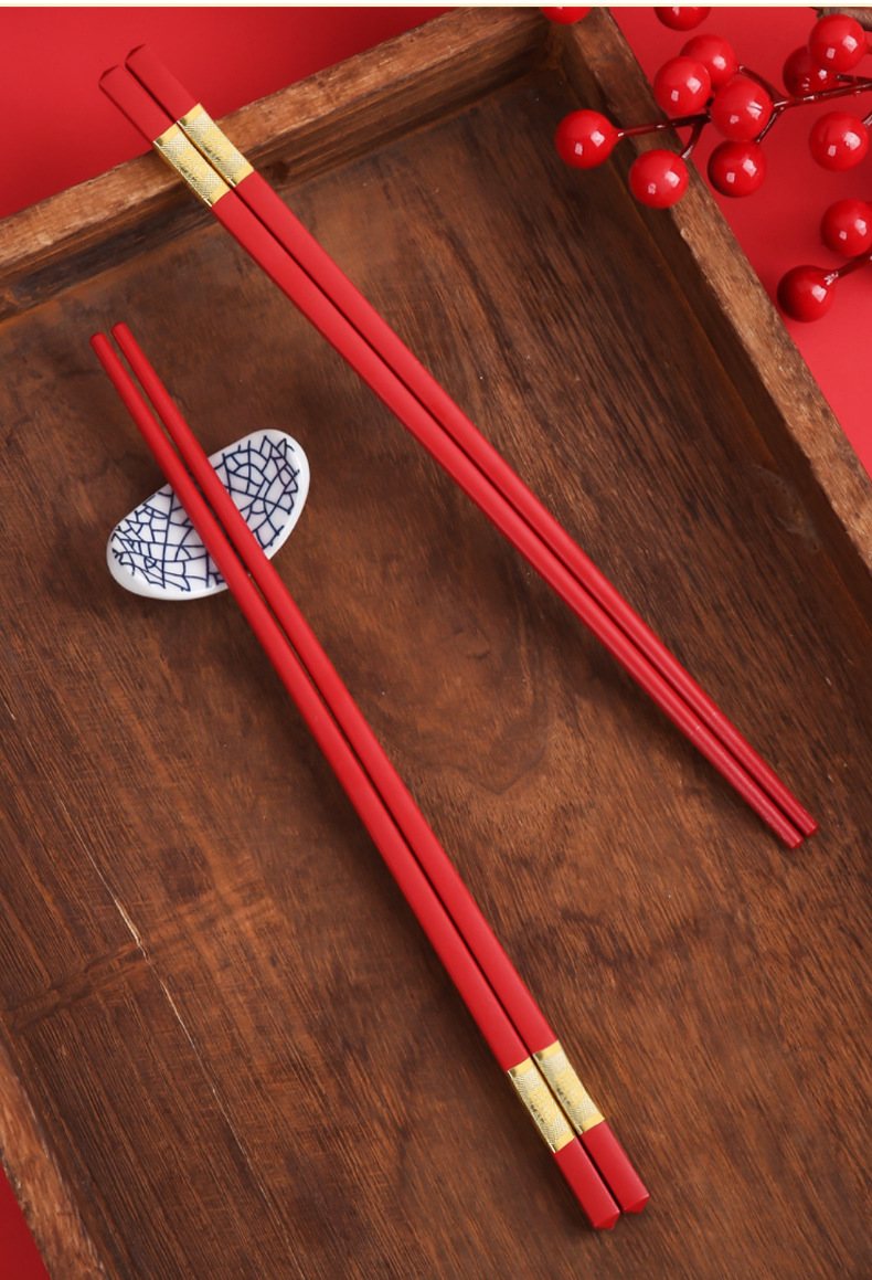 Nuevo hogar rojo boda aleación palillos boda palillos al por mayor nacional moda festivo regalo antideslizante regalo de inauguración caja de regalo