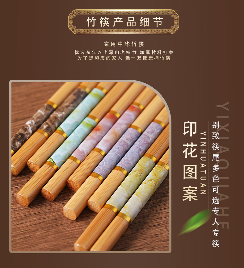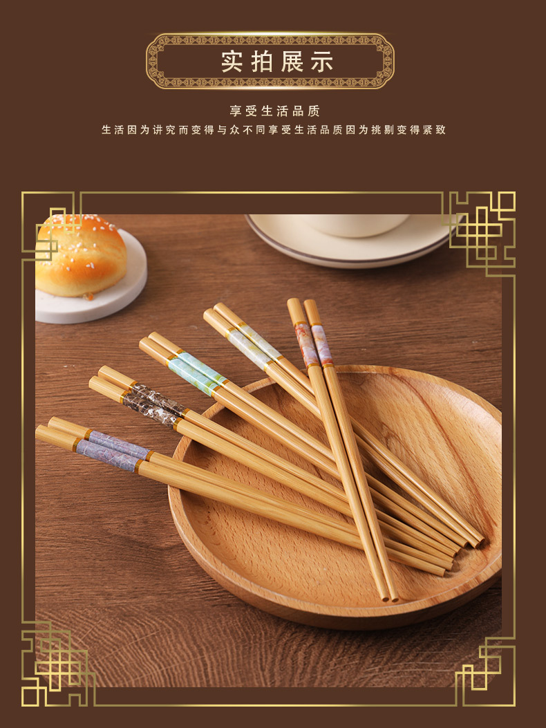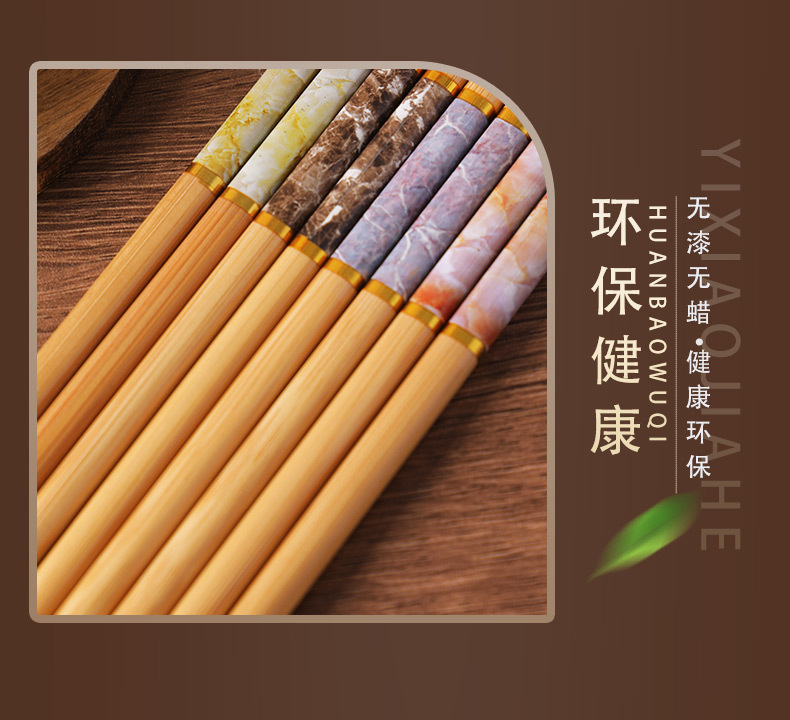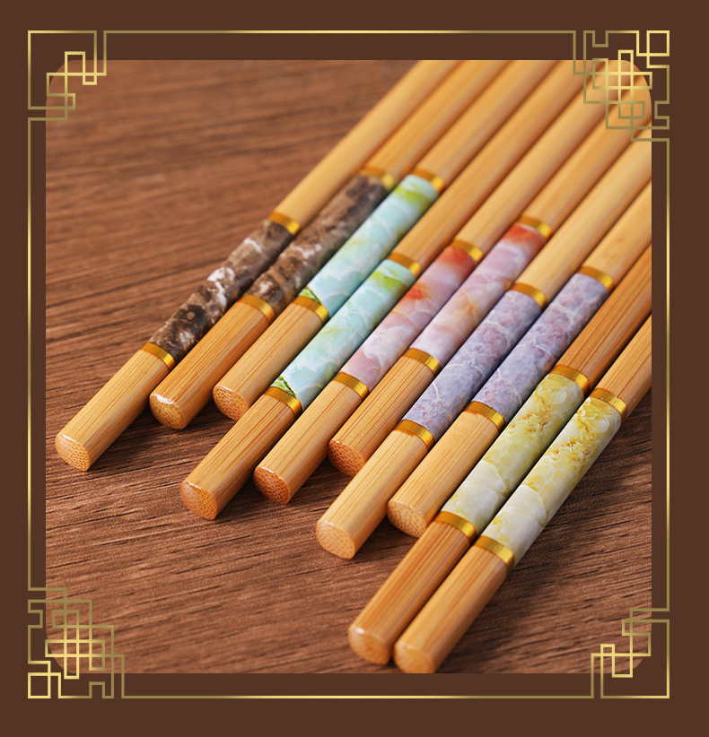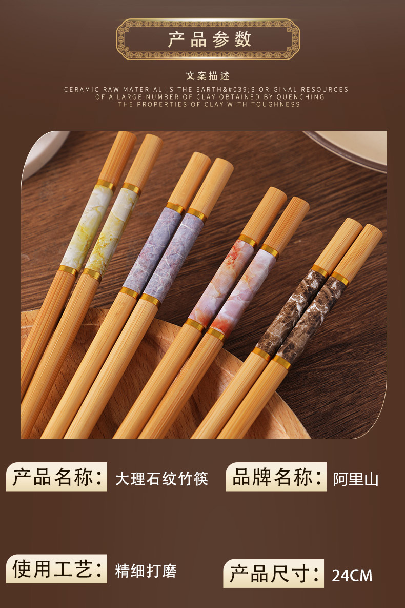 Palillos domésticos, bambú, patrón de mármol, película floral, palillos de bambú, antideslizantes, de alto valor, una persona, un color, platos al por mayor