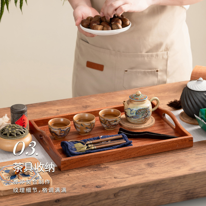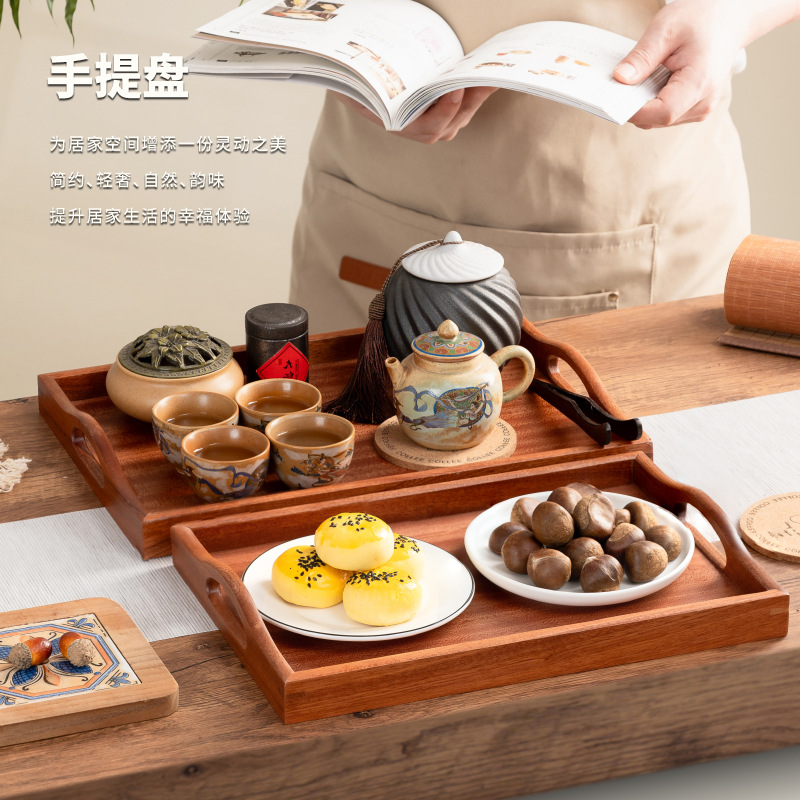 Paleta de madera Paleta de té de madera maciza de alta calidad para el hogar Sapele Paleta de madera comercial Bandeja de vajilla de postre de comida occidental