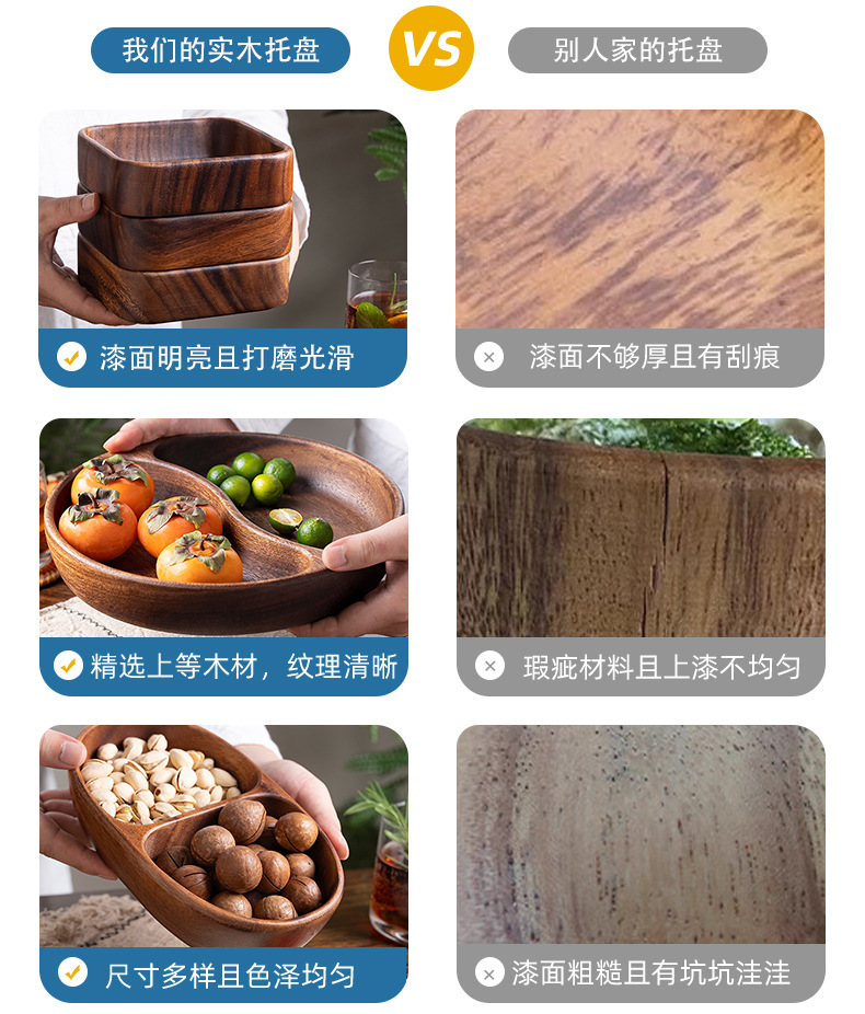 Xiangsi madera Placa de fruta seca hogar bandeja de madera maciza rectangular té tuerca fruta Placa de color de alto valor rejilla placa