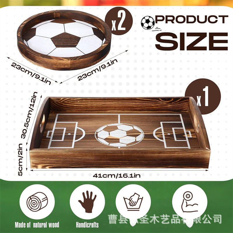 Plato de madera con forma de fútbol, fiesta, plato de comida cocinada, plato de bocadillos redondo cuadrado de madera con mango