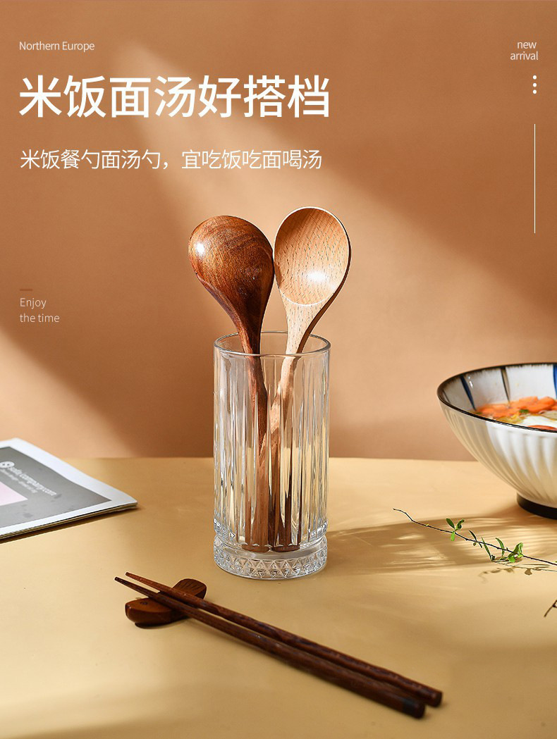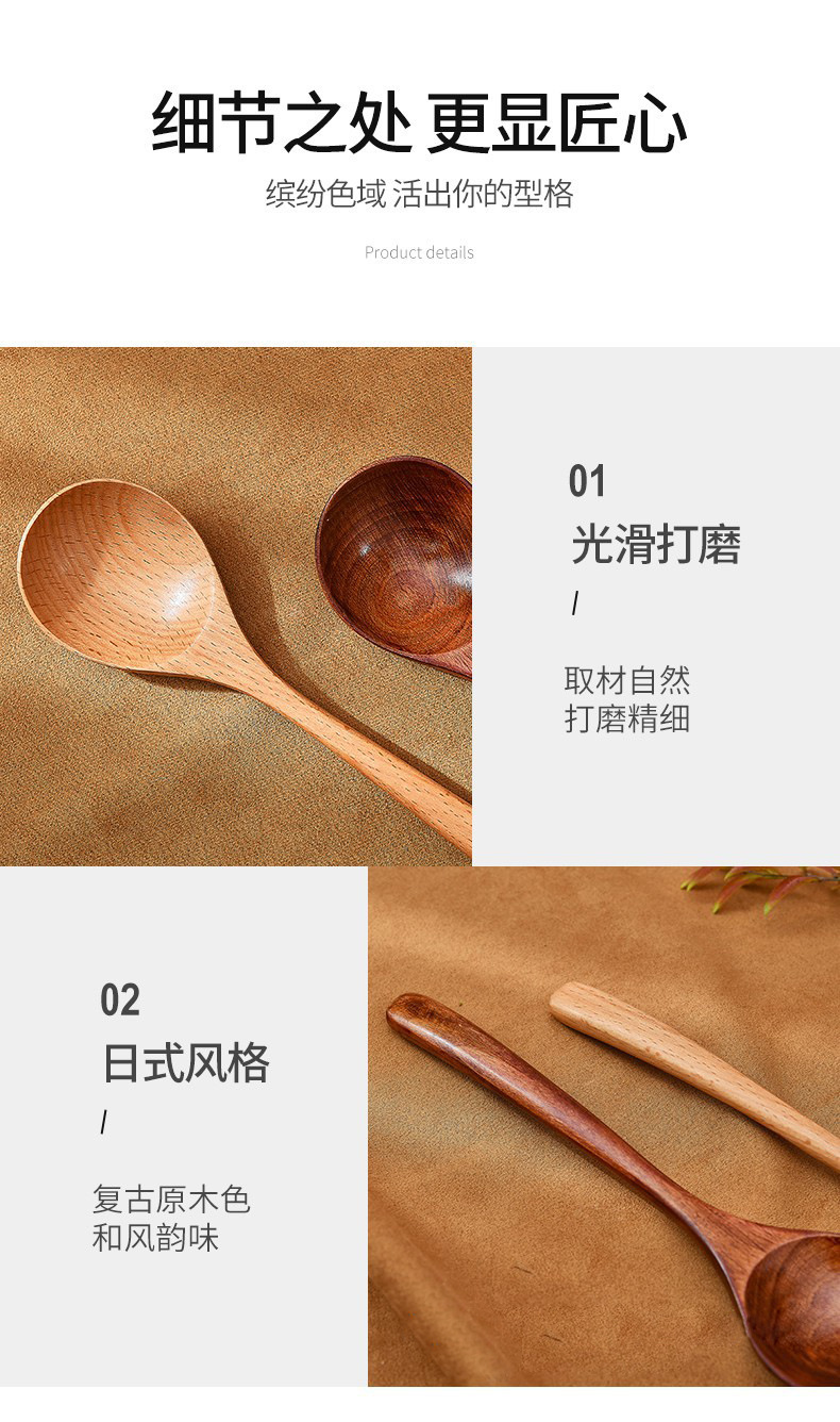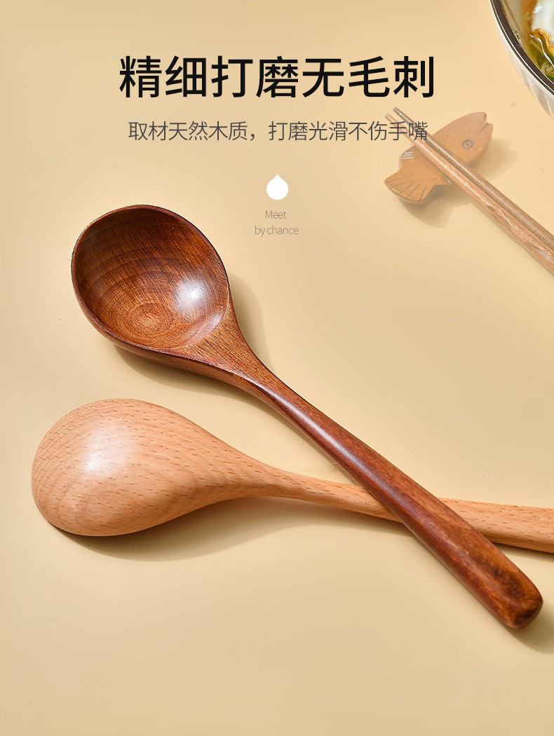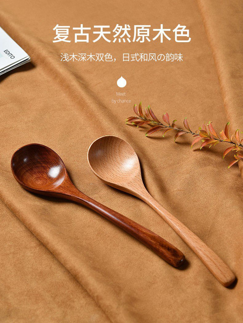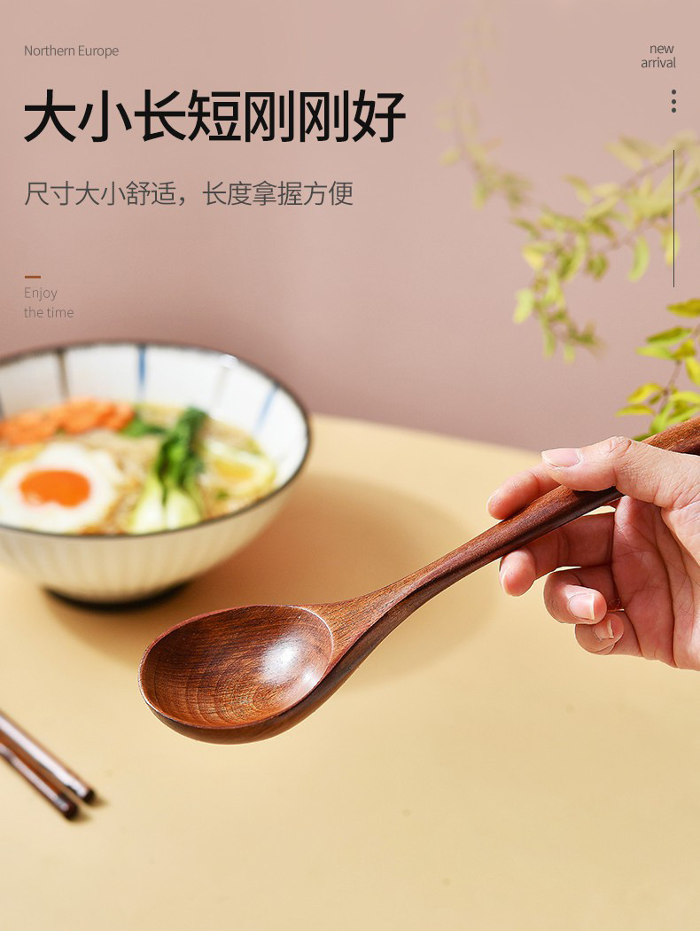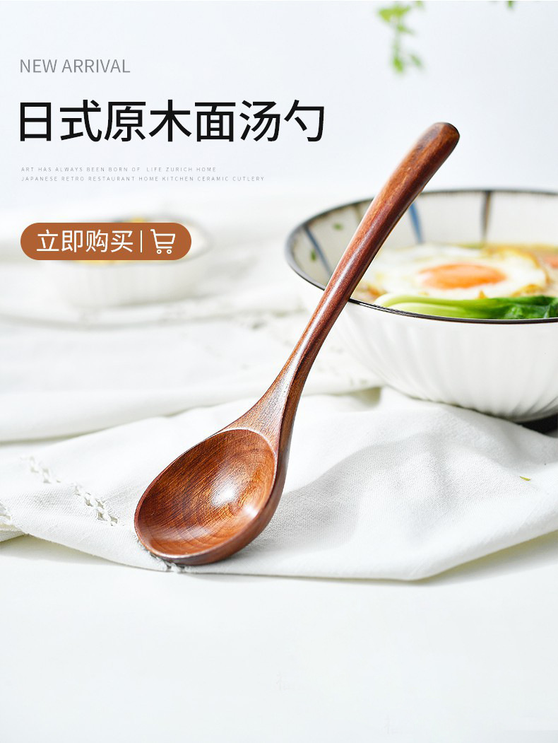 Cuchara de madera al estilo japonés Cuchara de sopa de madera de mango largo Cuchara de sopa para el hogar Ramen Cuchara de madera pequeña al por mayor de alto valor