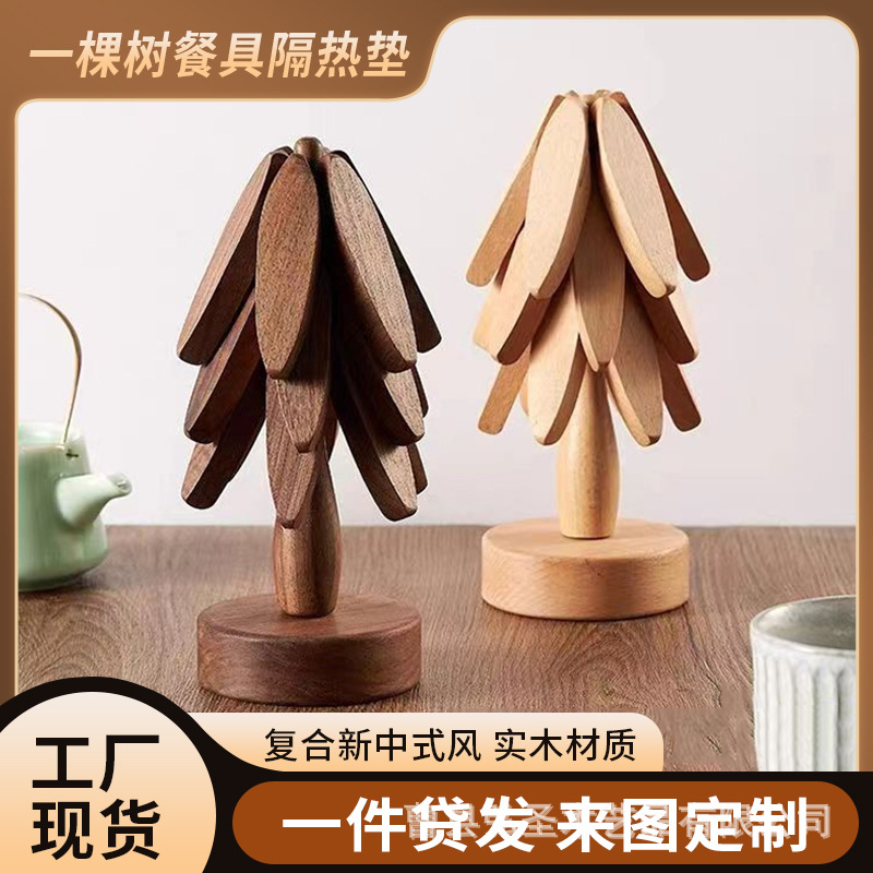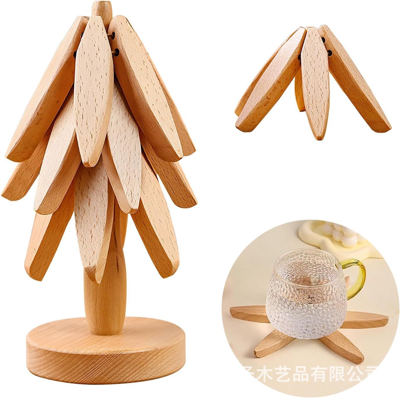 Posavasos de aislamiento térmico de madera, tapetes para tazones, tapetes de aislamiento térmico de forma creativa, posavasos de madera para un árbol, tapetes de mesa de madera maciza