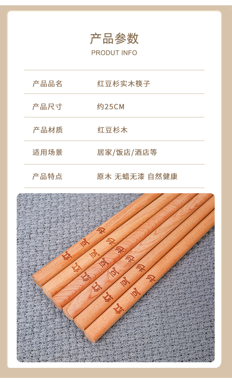 Hogar palillos de madera maciza al por mayor Tejo palillos 25cm comercial kuaizi talla en stock puesto suministro grabado logo