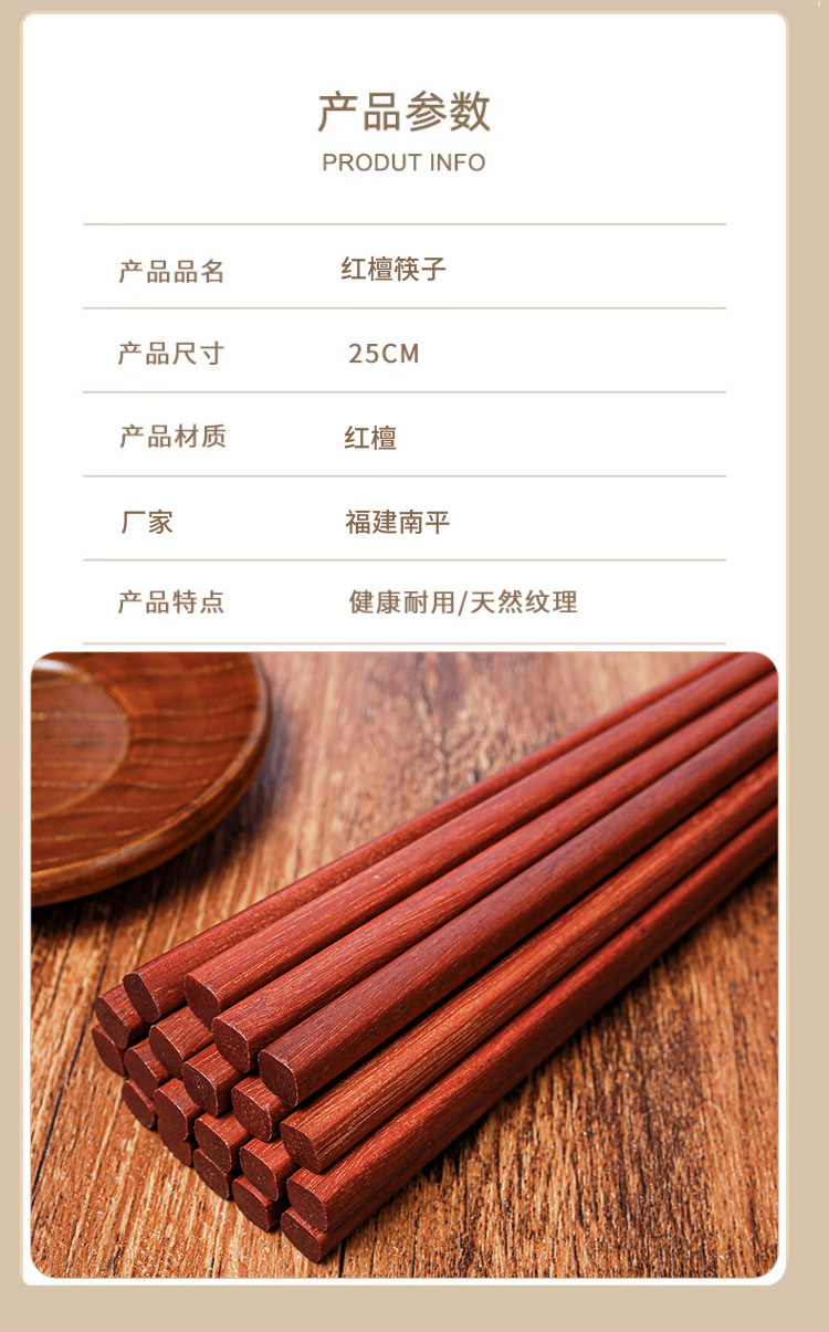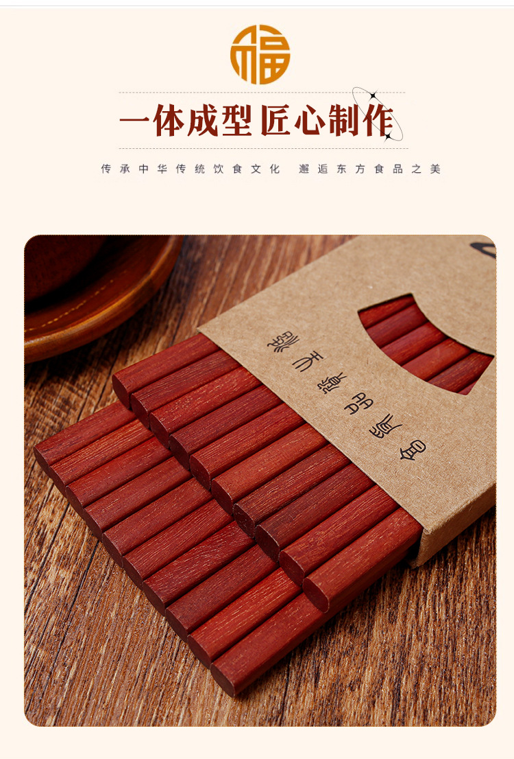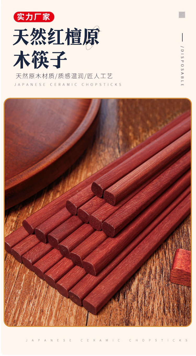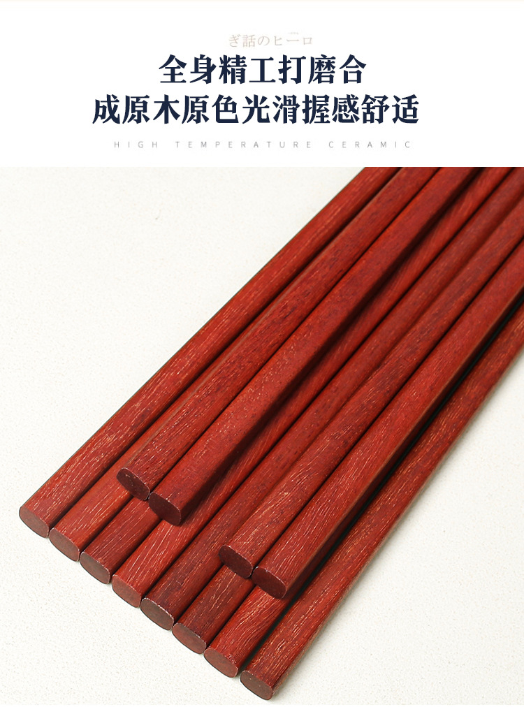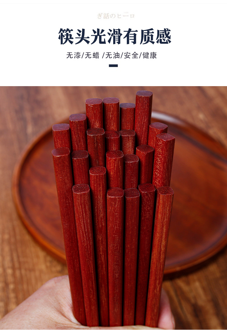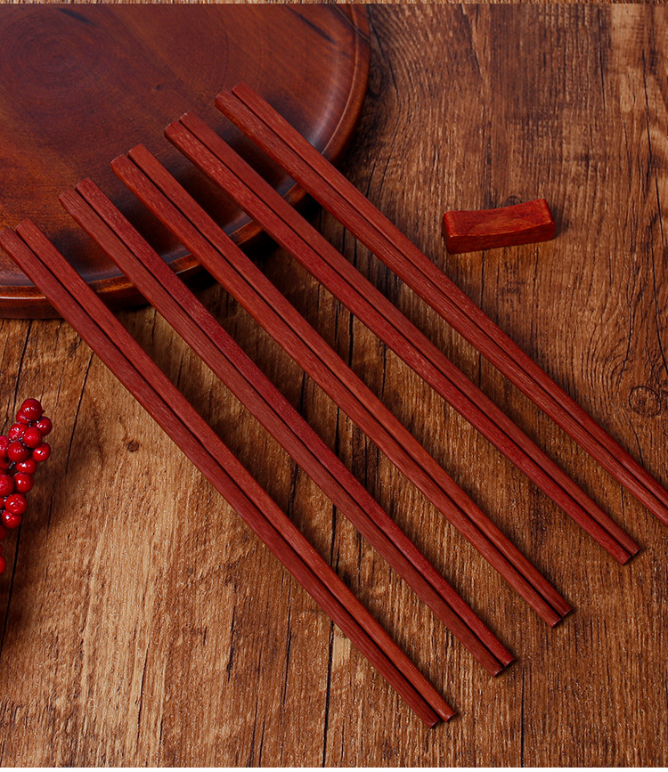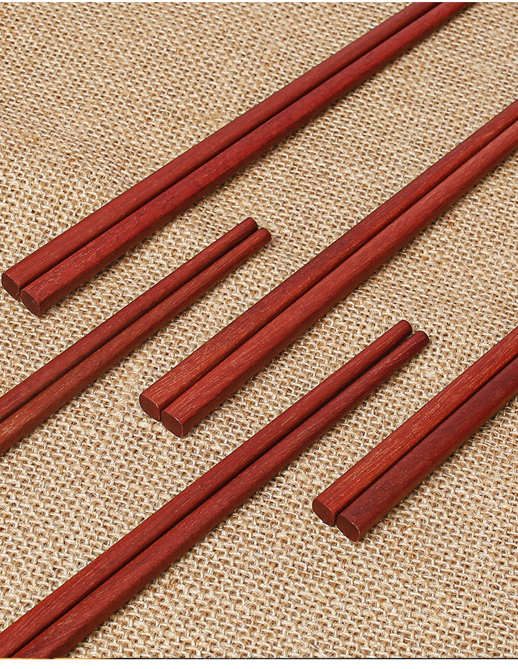 Palillos de madera maciza para el hogar 25cm sándalo rojo sin pintura sin cera antideslizante 10 pares de palillos de regalo comercial con letras LOGO