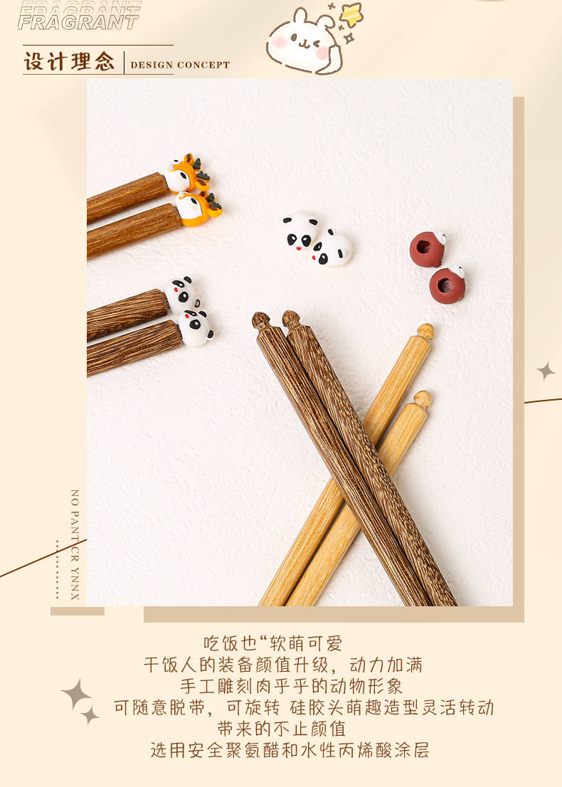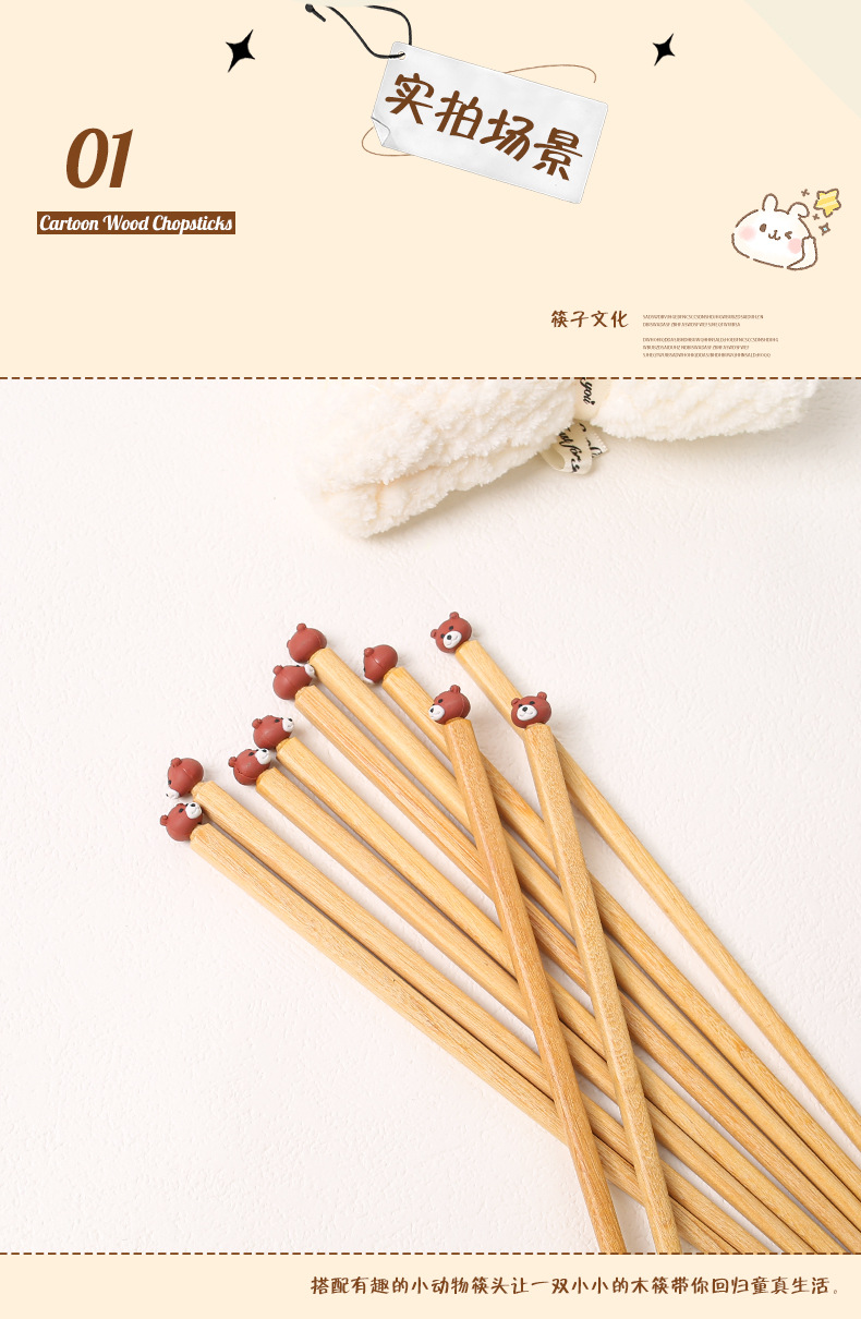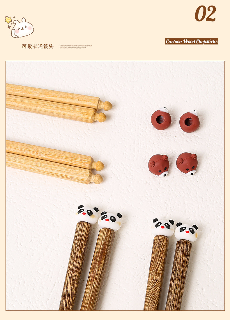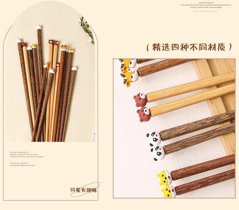 Ala de pollo palillos de madera al por mayor madera maciza hogar creativo dibujos animados cabeza de animal palillos una persona palillos grupo comunitario compra suministro