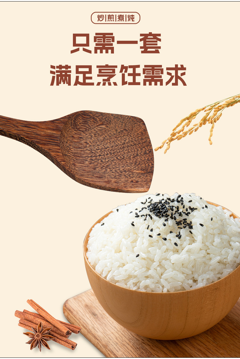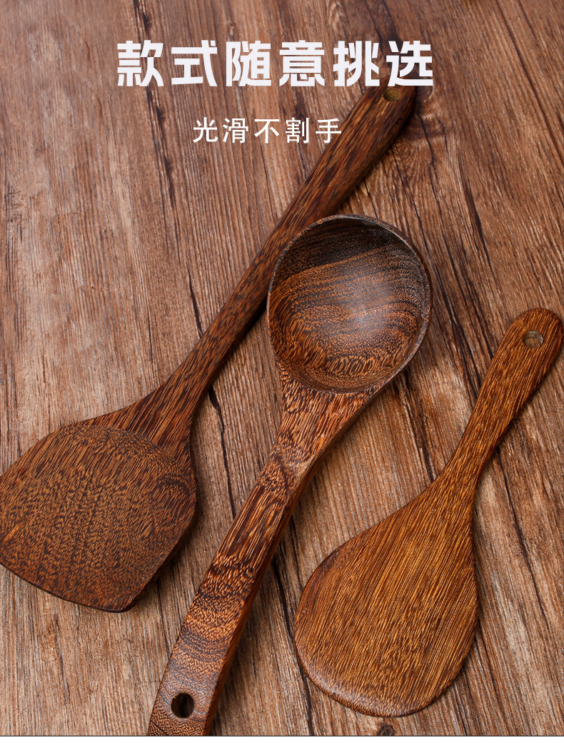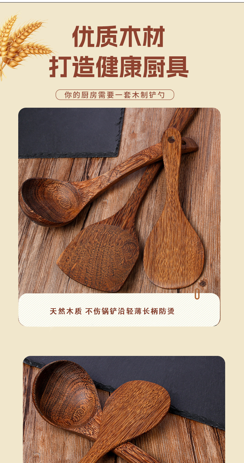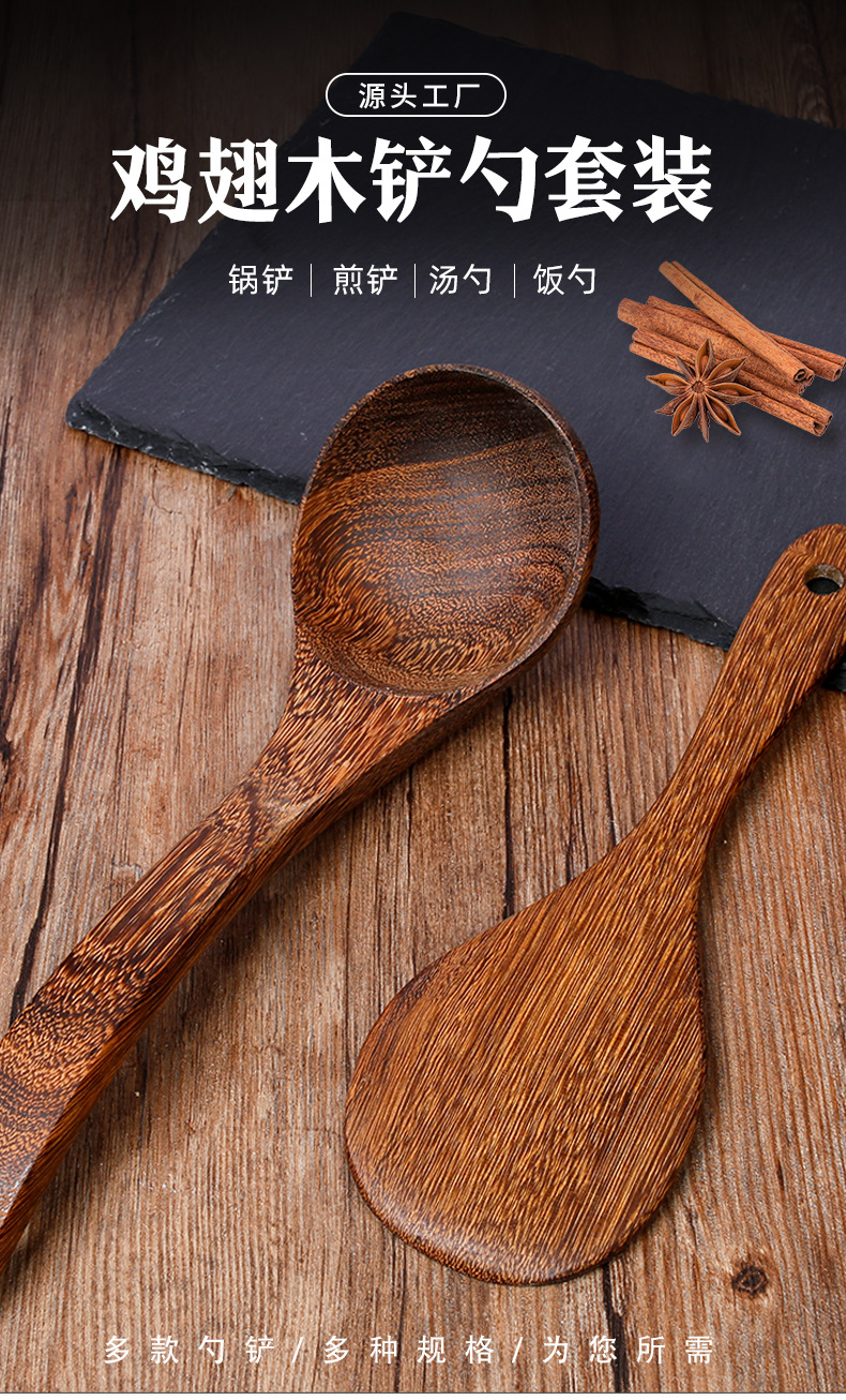 Espátula de madera de ala de pollo, cuchara de sopa, pala de arroz, mango de madera al por mayor, cocina antideslizante y antiescaldado, sartén antiadherente, utensilios de cocina de madera maciza, tallado