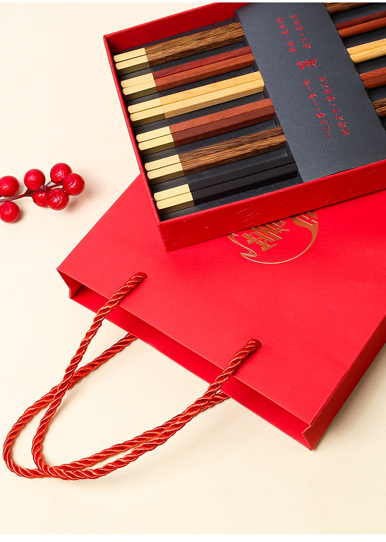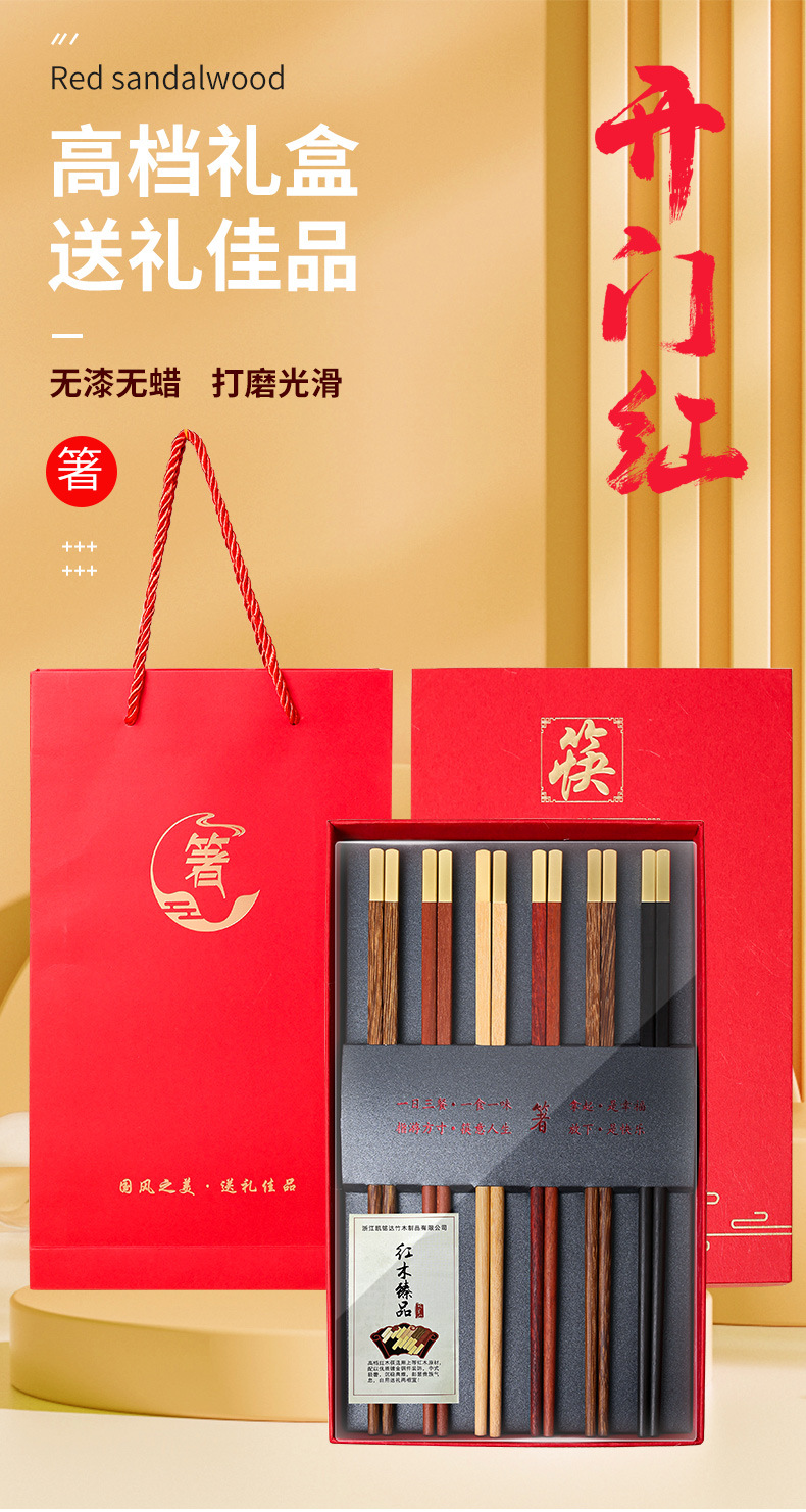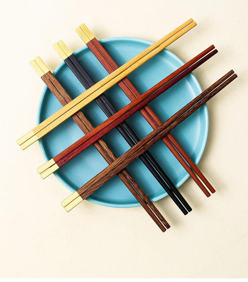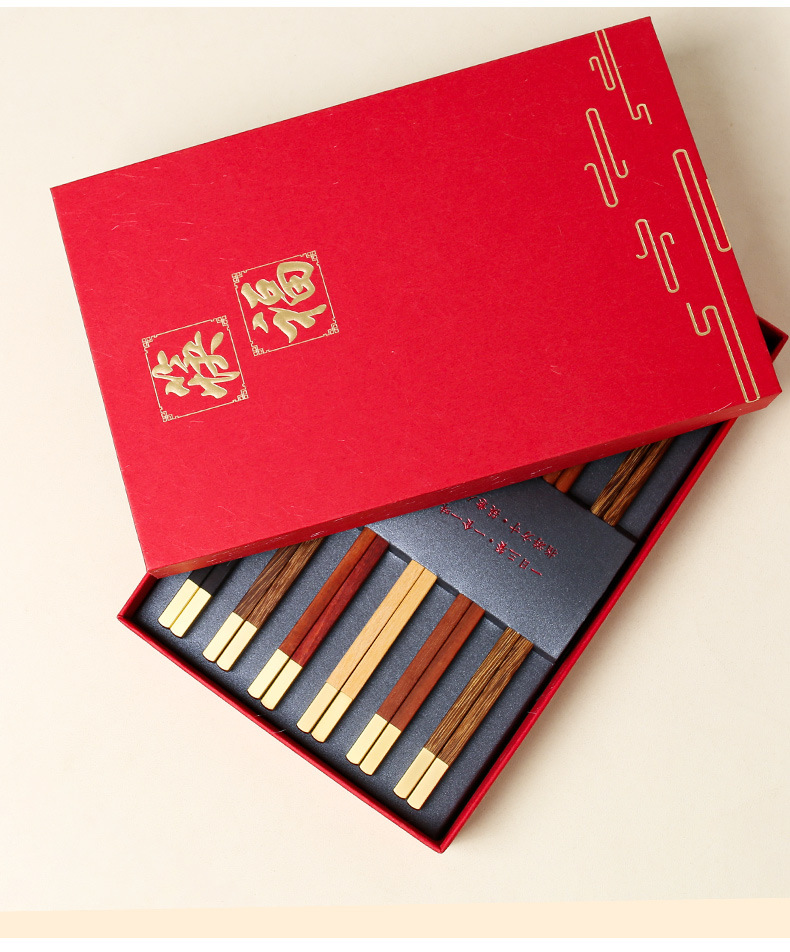 Nuevo hogar palillos de madera maciza caja de regalo cabeza de metal alas de pollo Rosewood nacional moda hogar banquete palillos empresa traje de regalo