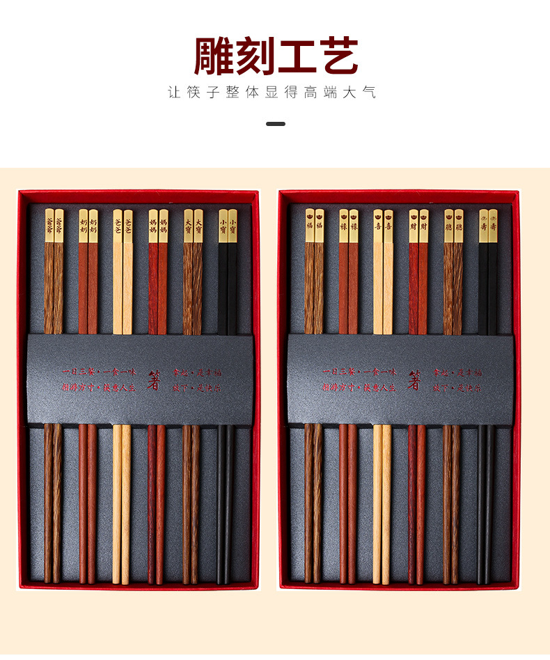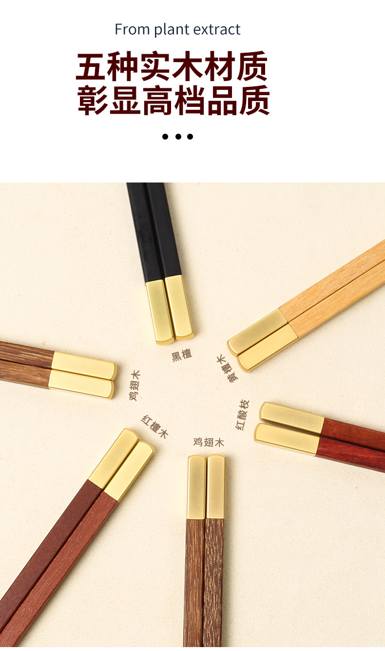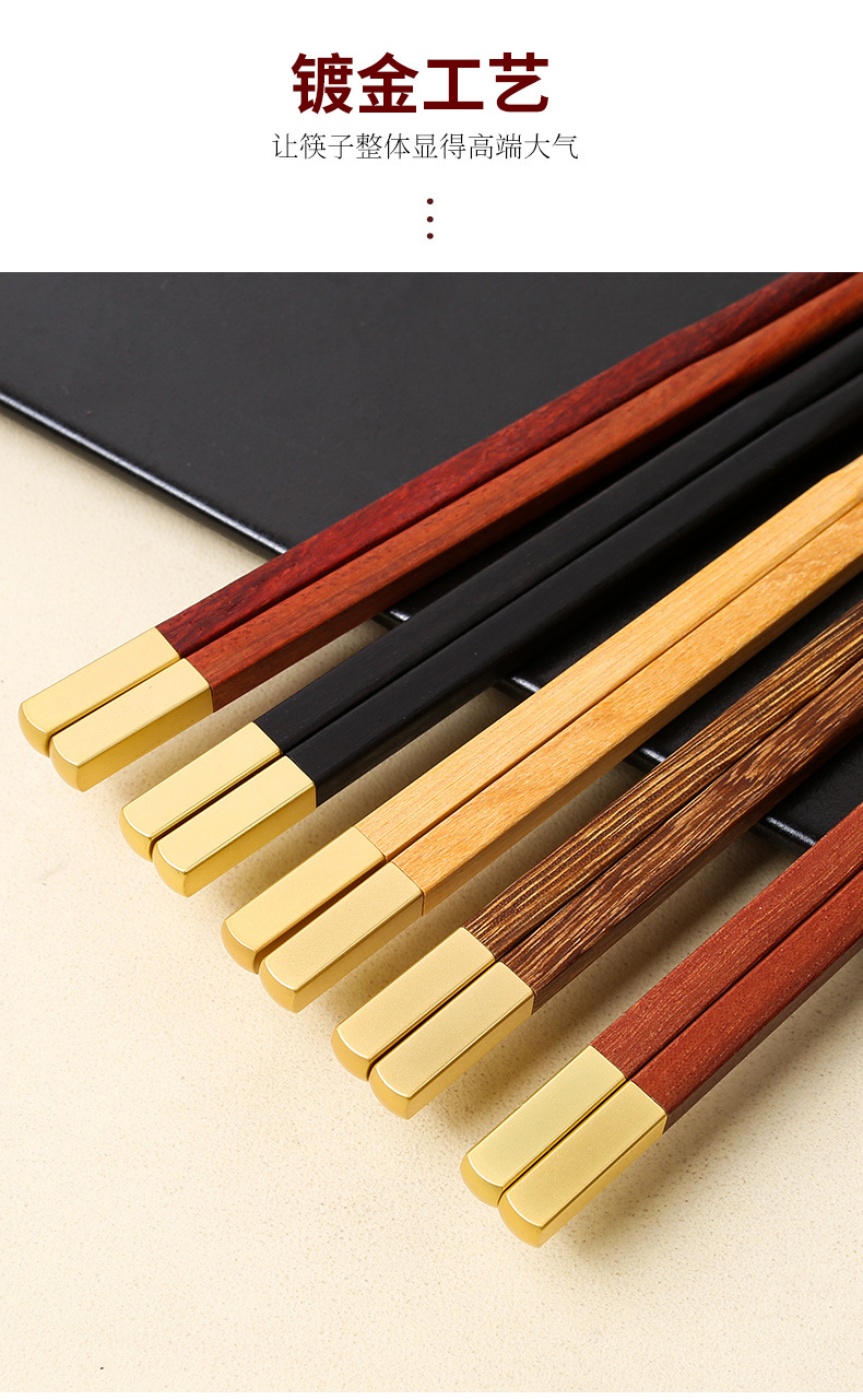 Nuevo hogar palillos de madera maciza caja de regalo cabeza de metal alas de pollo Rosewood nacional moda hogar banquete palillos empresa traje de regalo
