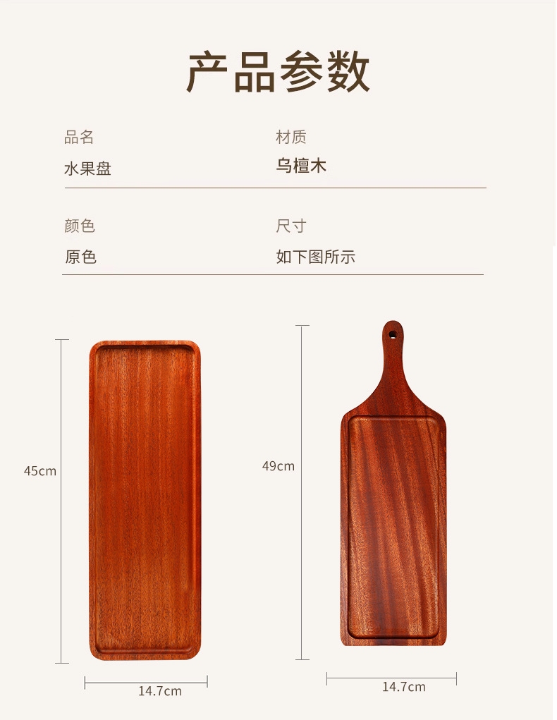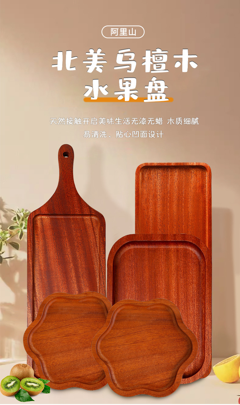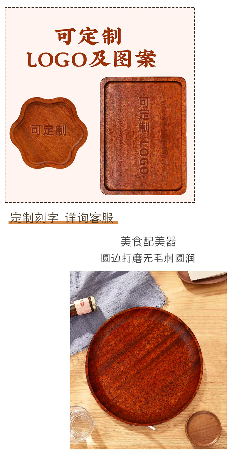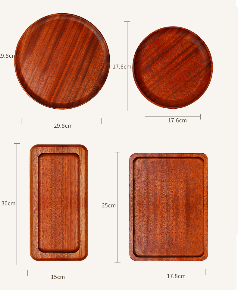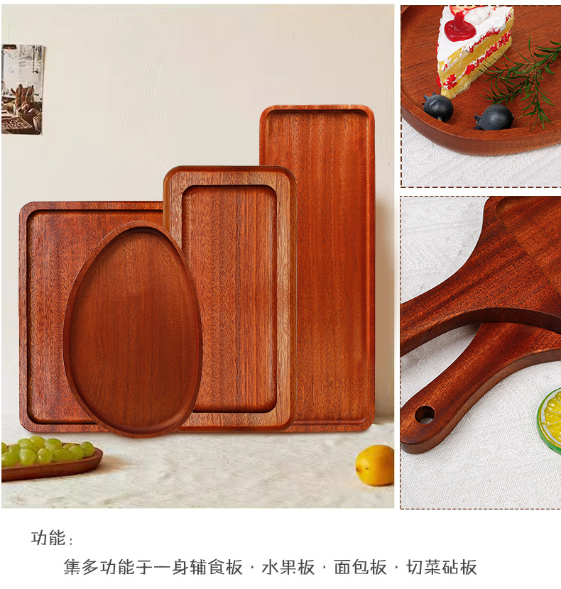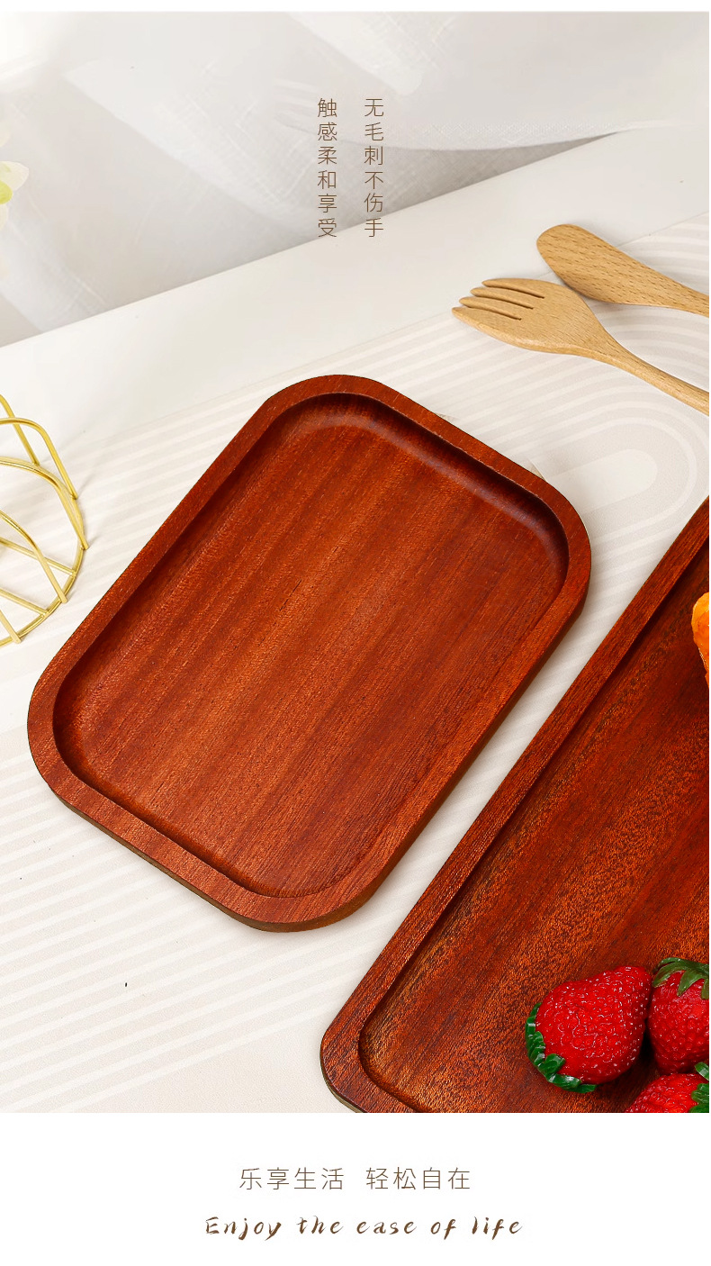 Platos de estilo japonés, platos de comida occidental al por mayor de alto valor, platos de verduras, platos de madera, sándalo de ébano, madera de madera maciza, bandeja de madera
