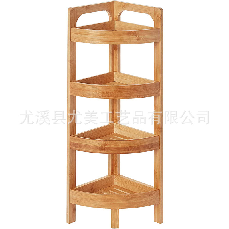 Triángulo de bambú estante de almacenamiento de cuatro capas de pie sala de estar del hogar esquina estantería baño estante de almacenamiento de esquina