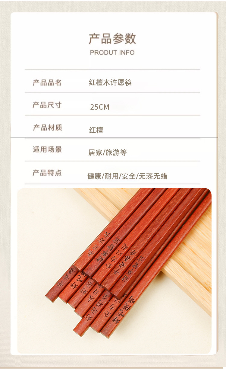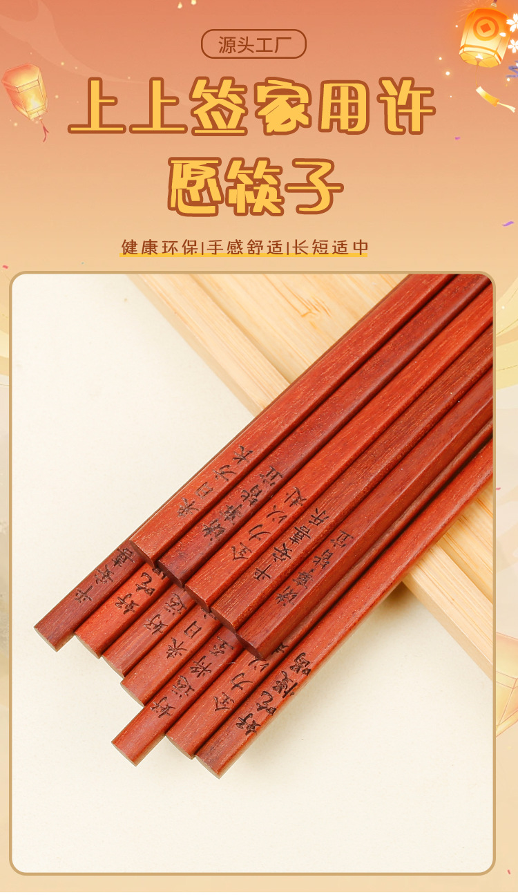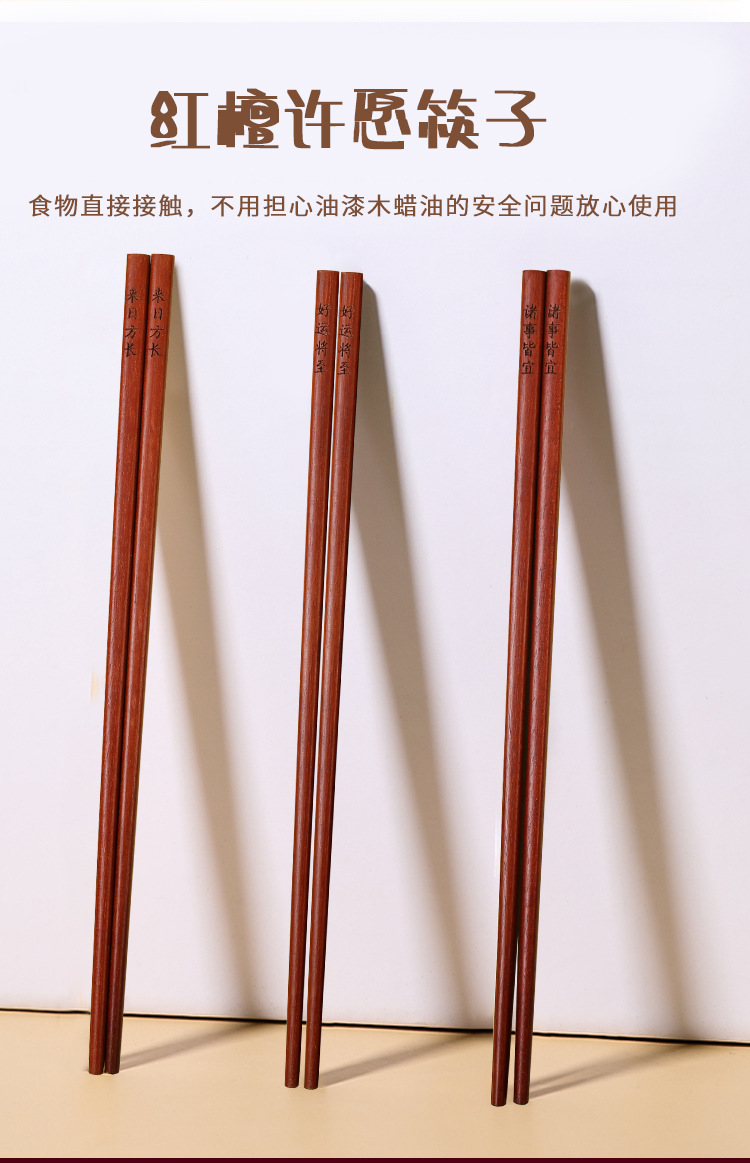 National Marea Palillos de sándalo rojo Palillos de madera maciza para el hogar Antideslizante Festival de primavera Año nuevo Regalos de año nuevo Palillos de deseos Caja de regalo al por mayor
