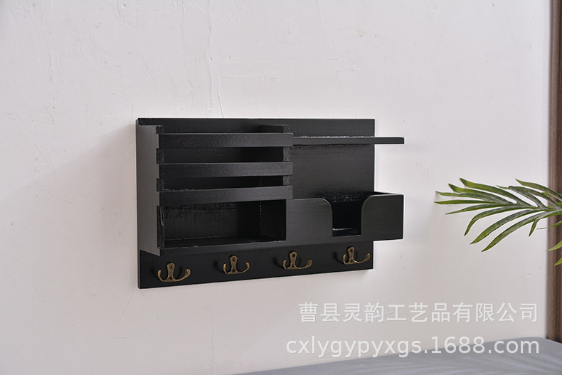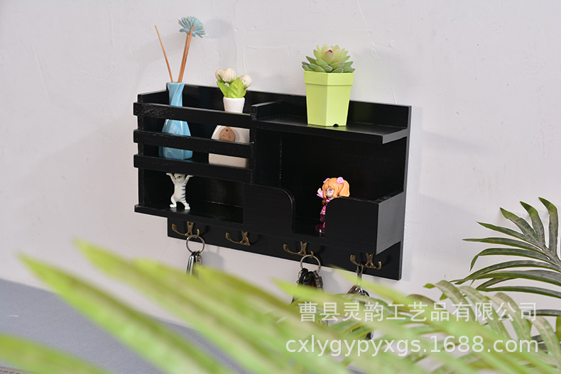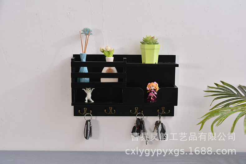 En stock estante de almacenamiento de pasillo de madera maciza hogar colgando reloj clave sombrero de madera pasillo de almacenamiento rack de almacenamiento de pared