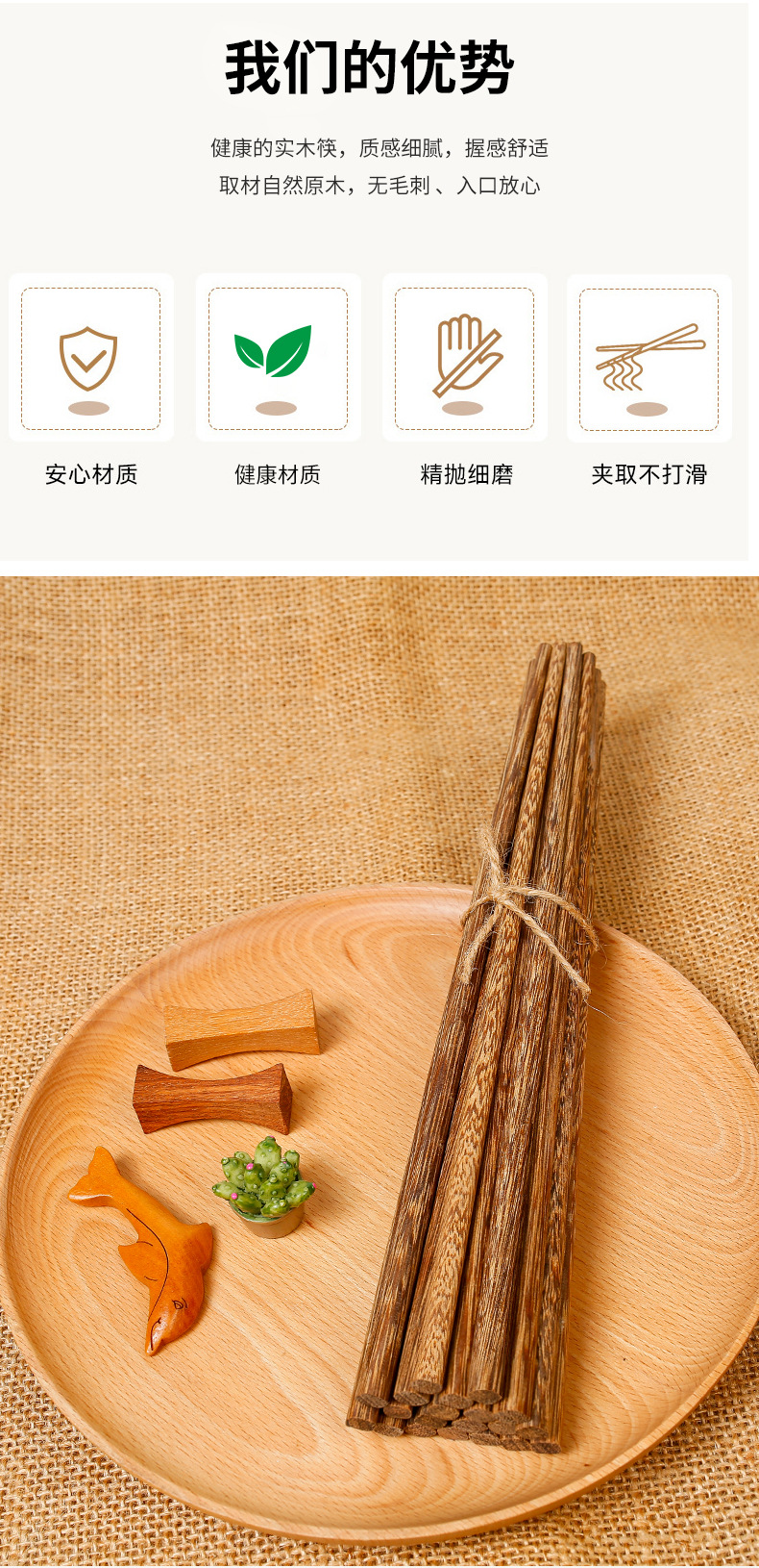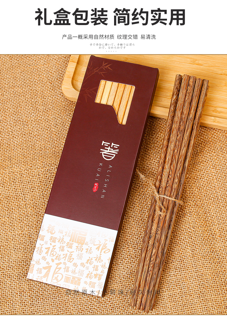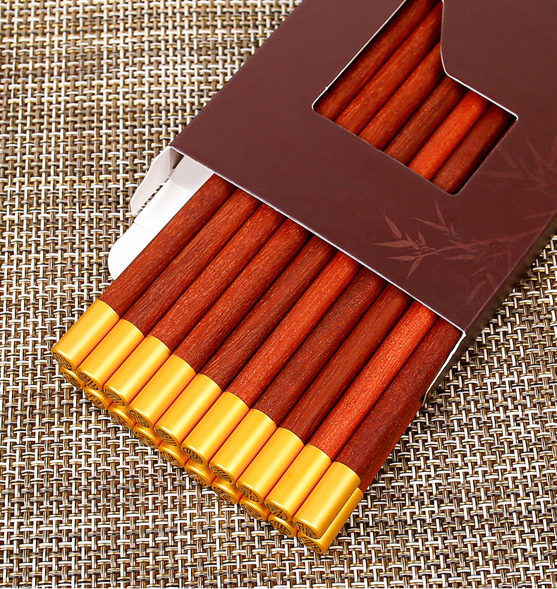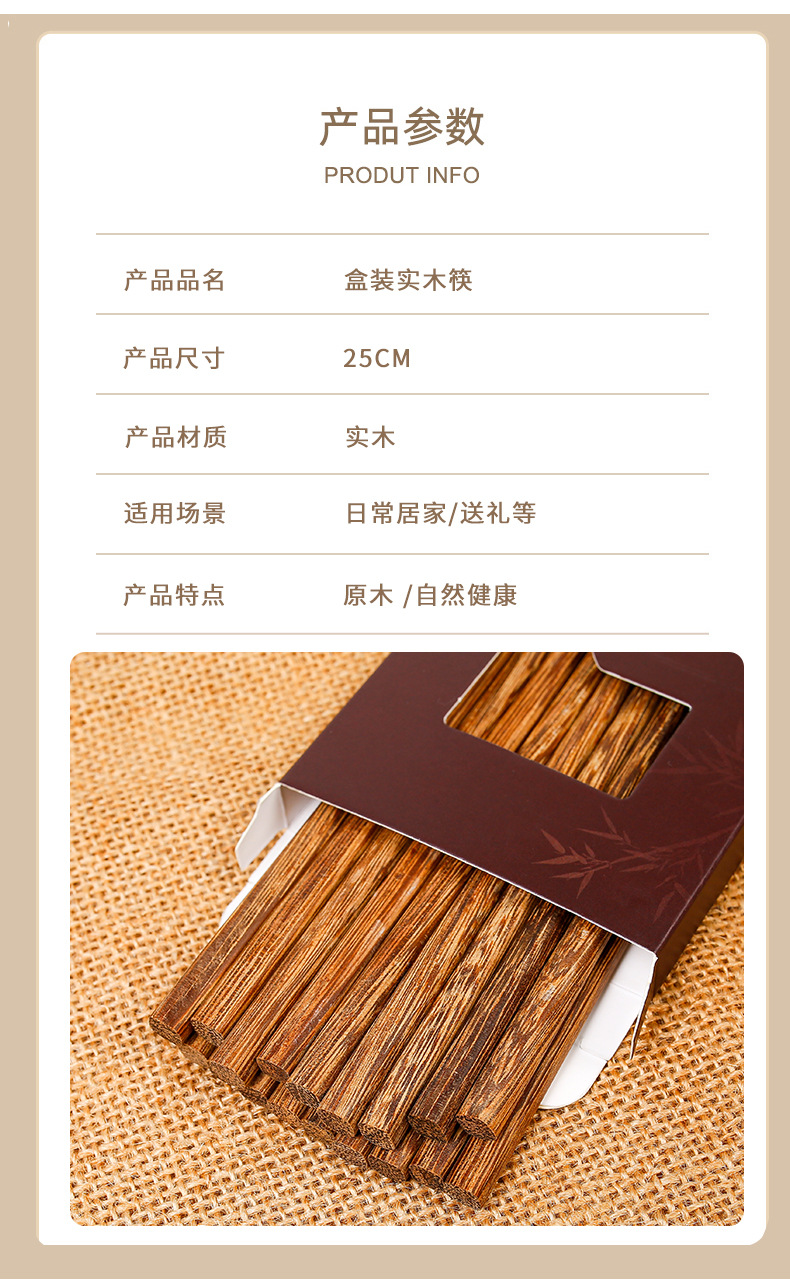 Palillos de madera de ala de pollo al por mayor 25cm para el hogar Palillos de madera maciza 10 pares en caja sin pintura, sin cera, antideslizante, LOGOTIPO tallado